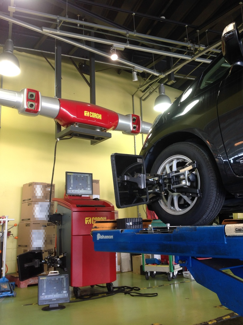 アライメント調整とは・・・縁石への衝撃や長年の使用で、