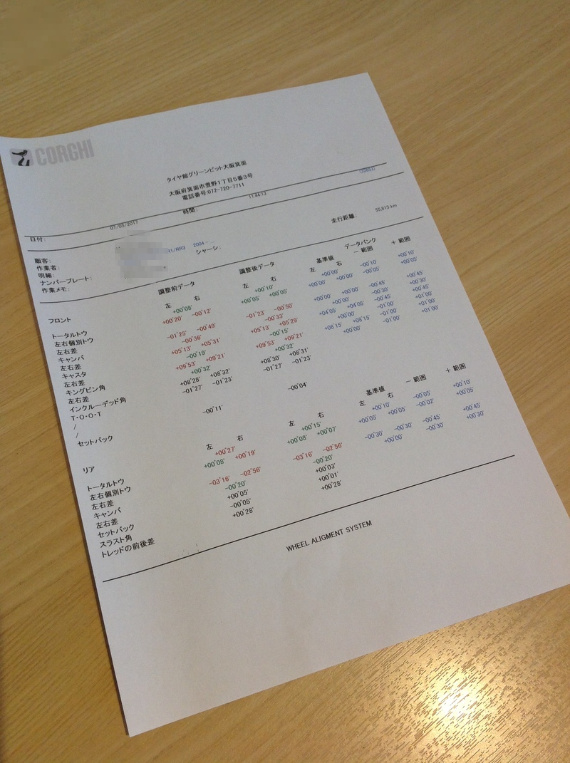アライメント測定、調整後は分かり易く紙面でご説明致しま~す。