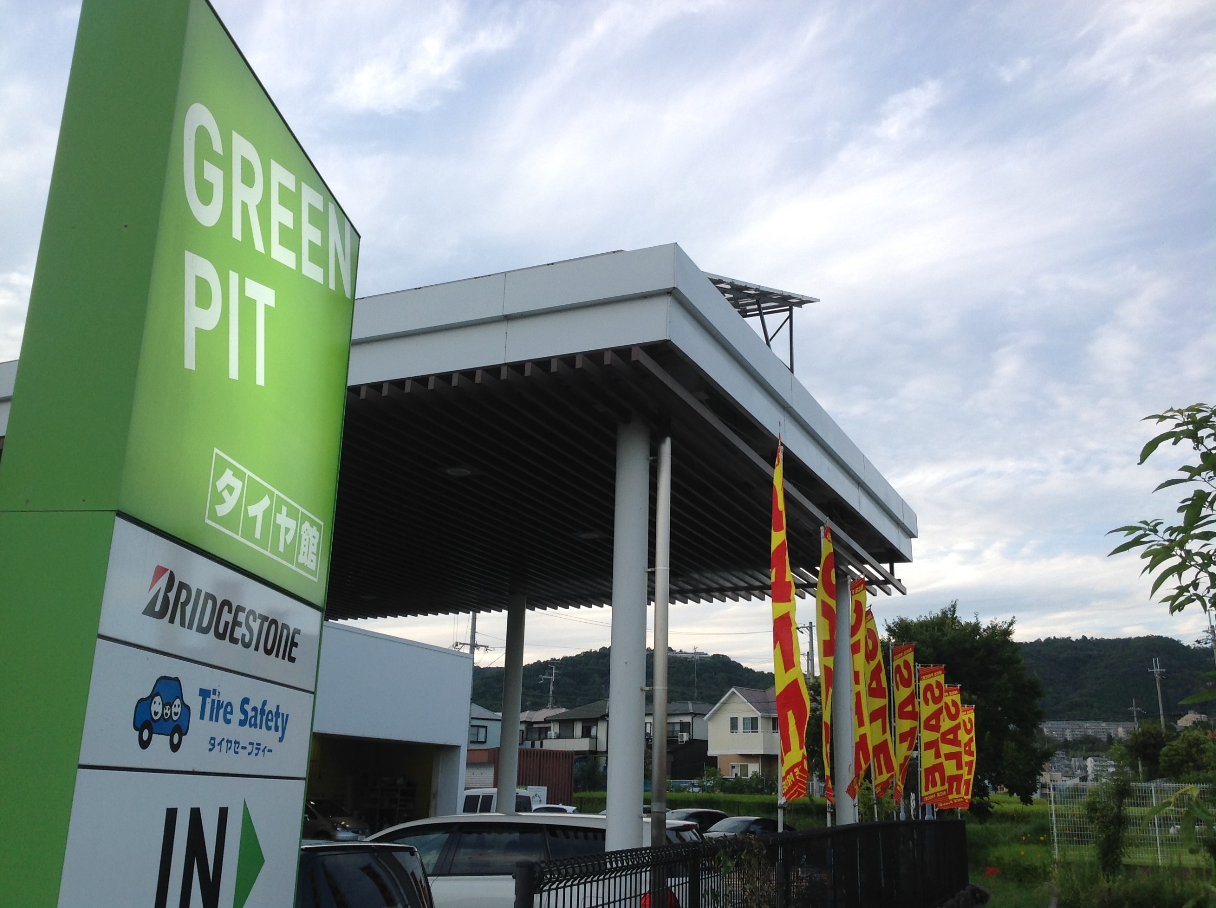 タイヤ館グリーンピット大阪箕面の目印は「GREEN PIT」