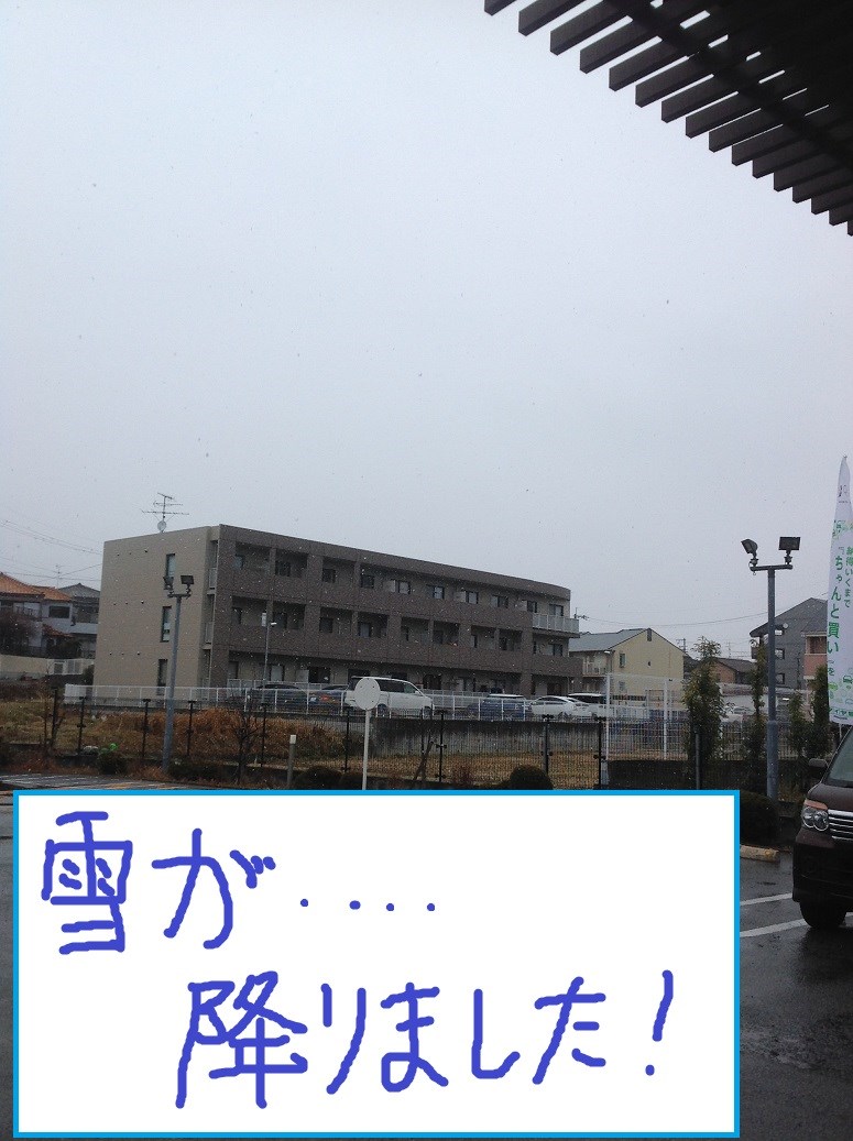 お昼頃に雪が降っておりました!!