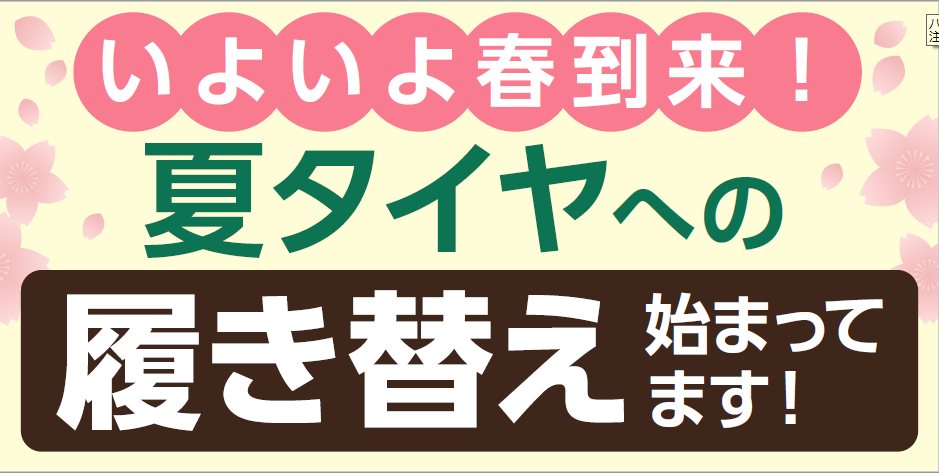 少し春が近づいているようなお天気もあったりしましたので、夏タイヤ(ノーマルタイヤ)をご検討されたり・・・