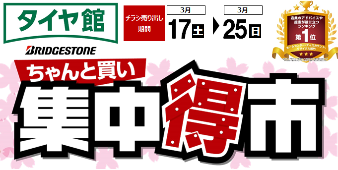 ☆残り二日☆ ポスト 2018年3月24日 タイヤ館GP大阪箕面WEBご覧頂きまして、ありがとうございます(。・ω・)ノ゙ さて!! 集中得市セールも本日(24日)を含めて、残り二日となっております♪ しかも!!この2日間は天候も良くお出掛け日和になりそうな☆(気象庁HPより) 残り2日間!!ご来店・ご相談お待ちしております♪ 担当:たにぐち