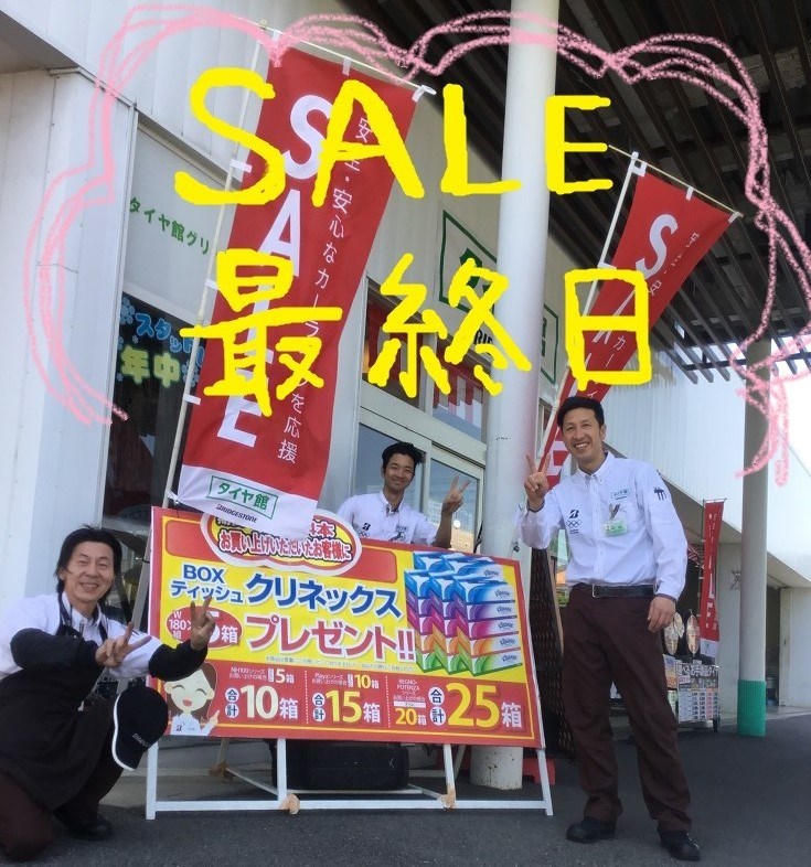 ☆本日セール最終日です!!☆ ポスト 2018年5月6日 こんにちは~!!(o^∀^) 4月21日から行っていた「GW応援!セール」が本日までとなっております!! タイヤのお問い合わせは勿論! GWでお出かけされたされた方は長距離後のメンテナンスの点検、 パンク等の相談もさせて頂いております!! 是非お立ち寄りくださいね~~!!ヽ(*^^*)ノ