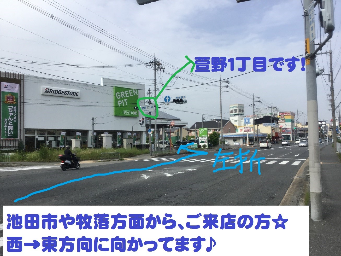 目安は 萱野1丁目を超えたら左折と覚えて下さいませ☆