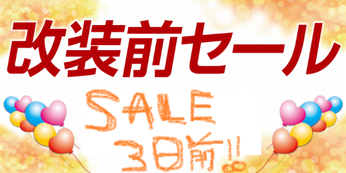 ☆改装前セール3日前!!!☆ ポスト 2018年5月30日 こんにちは!! 今日、明日雨みたいですね~!ジメジメするから、はやくやんで欲しいですね!! 今日で6月2日から始まる改装前セール3日前となりました!!! 改装前の在庫一掃!!!売り尽くしセールです!!! タイヤ点検、メンテナンス点検無料で出来ますので慈是非この機会に!!(o^∇^o)ノ