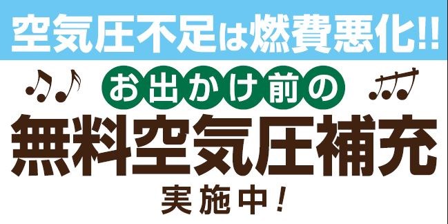 お出掛け前にお車タイヤ空気圧点検気軽にお越しください。