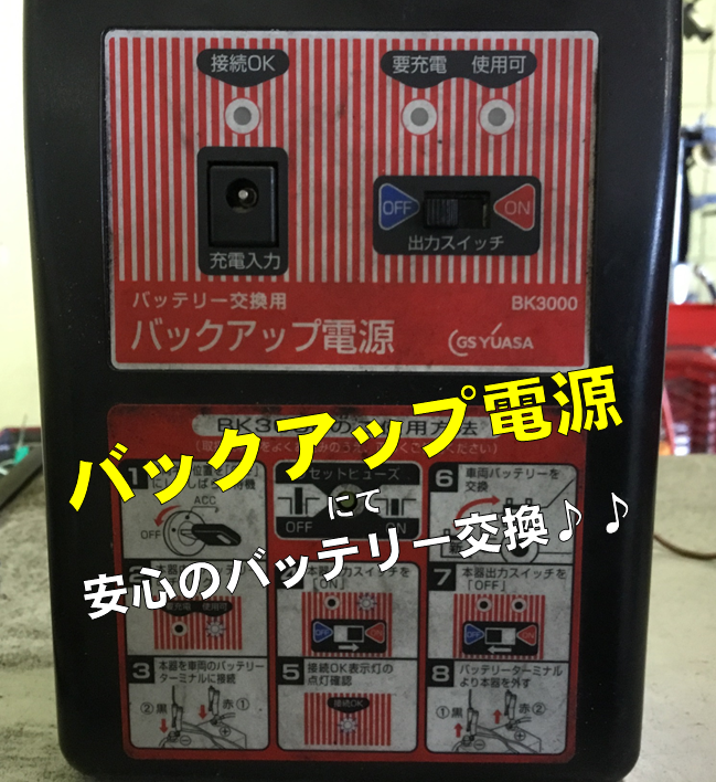 タイヤ館では専用のバックアップ電源にて安心のバッテリー交換を実施しております。