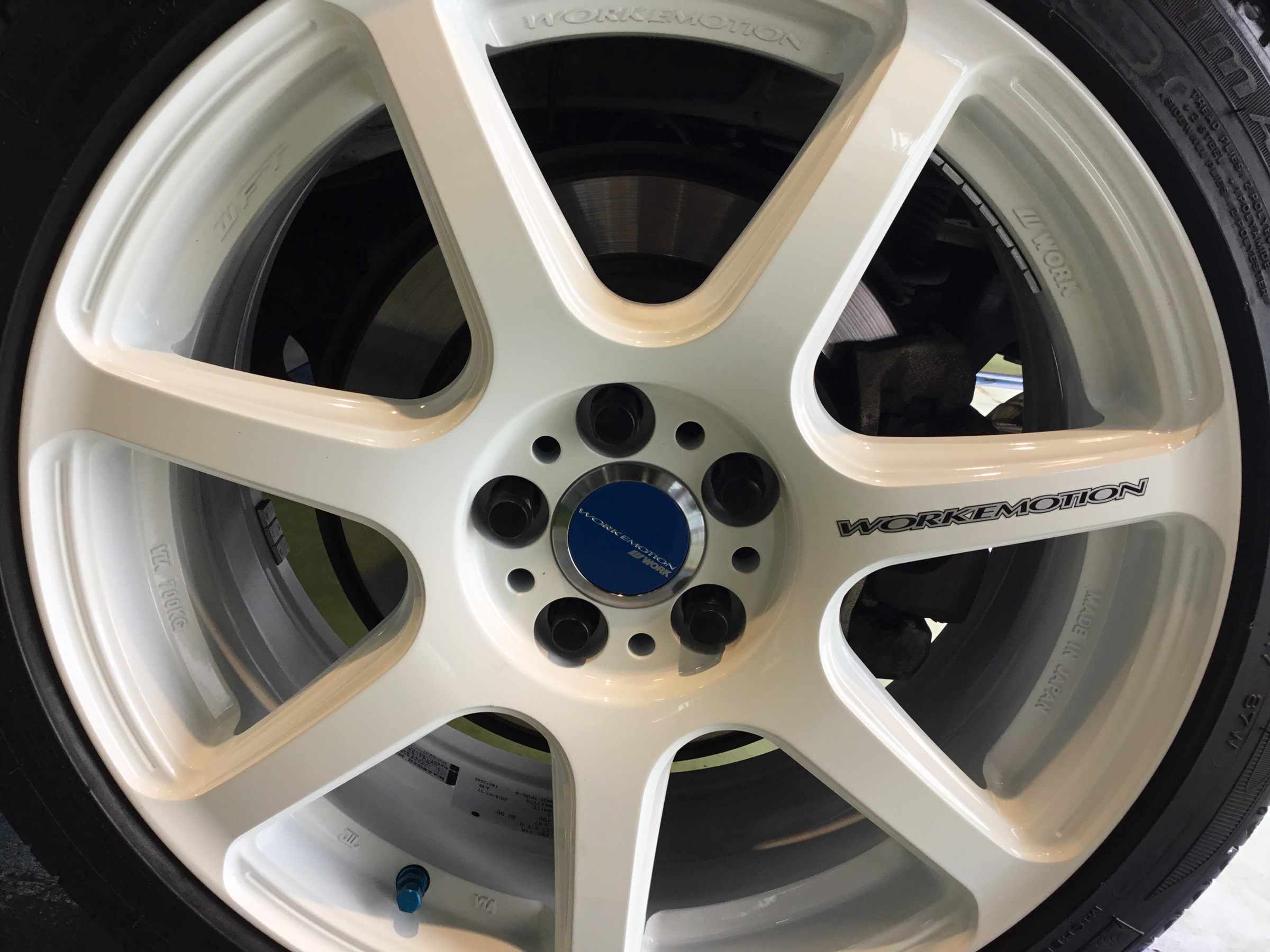 取り替えたホイールは:『ワーク エモーション T7R WHT』ブリヂストンコラボで青のバルブになります。