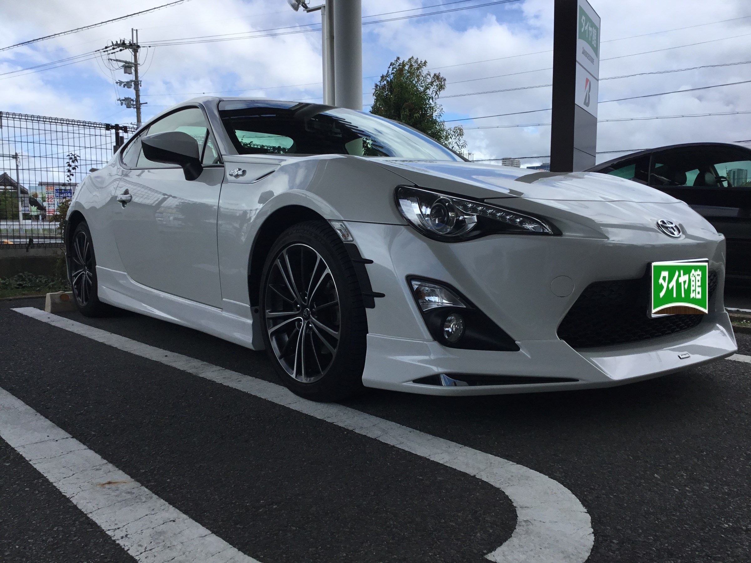 真っ白なボディに真っ白なホイール、青のバルブとセンターキャップでいいアクセントになり