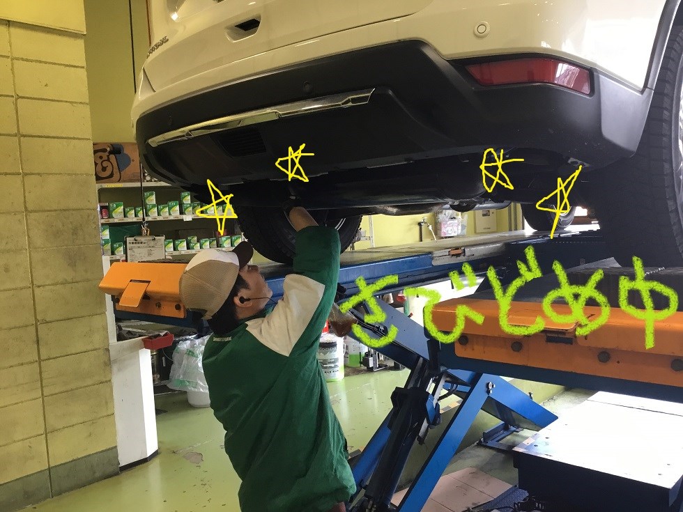 ☆お車の下廻り見たことありますか??☆ ポスト 2019年2月25日 こんにちは~!! いきなりですが、皆様は愛車の下廻りを見たことありますか?? 履き替えや、オイル交換などの作業時にリフトアップすると 下廻り、特にマフラーが錆びているお車をよく見掛けます(*_*) 冬に雪のあるところに行かれるお客様は滑り止めで撒いている 塩化カリウムが付着して錆びやすくなってしまってる可能性があります。 また、夏に海に行く方も同様で塩が原因の可能性が高いです。 下廻りをのぞいてみたい!という方は是非スタッフにお声掛け下さい! 無料で点検させて頂きます(*´∇`*)