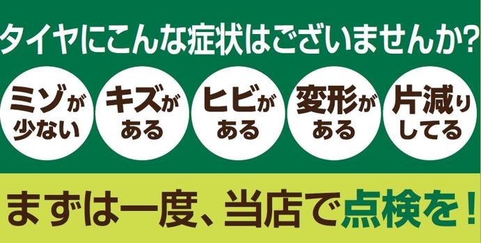 ☆夏タイヤチェックしてますか??☆ ポスト 2019年3月2日 こんにちは~!!今日は一段と花粉が凄いですね(*_*) 朝から目と鼻がかゆいです~!! こんなに暖かくなるとタイヤを冬タイヤから夏タイヤに もどされる方も多いと思いますが、皆様の夏タイヤの状態は良好ですか?? 前回の冬の履き替えの際に「夏タイヤの溝が減ってます」「経年劣化が進んでいます」 と言われてないでしょうか?? 今のタイヤの状態が気になる!という方はタイヤの点検も無料で行い、 ご説明させて頂くこともできますので、是非ご相談くださいませ!!