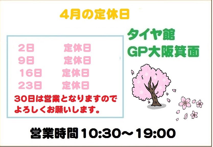 ☆4月の定休日のご案内!!!☆ ポスト 2019年3月30日 こんにちは~!!! もうすぐ4月!!新生活の始まりですね~!! 桜も咲いてきていますね!!お花見行かなきゃ~!!!(*´∇`*) さて、当店の4月の定休日のご案内です!! 2日(火) 9日(火) 16日(火) 23日(火) は定休日になっております。 30日は火曜日ですが営業になりますので宜しくお願いします☆
