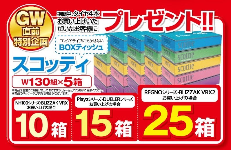 5月6日まで開催中です! ポスト 2019年5月3日 いつもタイヤ館グリーンピット大阪箕面店をご利用頂き有難う御座います みなさまゴールデンウィークは如何お過ごしでしょうか? お得な『集中得市』は5月6日まで開催中です、 是非この機会にご利用下さい、皆様の御来店お待ち致しております。 担当:菅