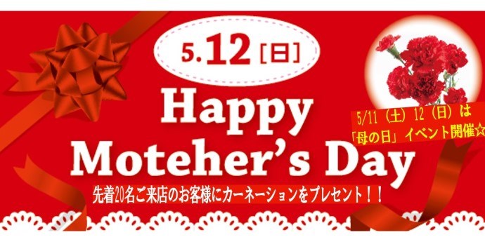タイヤ館では5月11日・12日と母の日キャンペーンを行っておりまして、