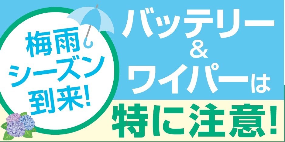 梅雨前に!! ポスト 2019年5月22日 みなさまいつもご覧いただきありがとうございます! さてもすぐ梅雨がやってまいりますね・・・ さて梅雨対策といえば車も対策が必要です!! 『ワイパー』 『バッテリー』 『エアコンフィルター』 『タイヤ』 タイヤの点検も無料になっております。是非ご来店下さい! 皆さまのご来店お待ち致しております。 担当:菅
