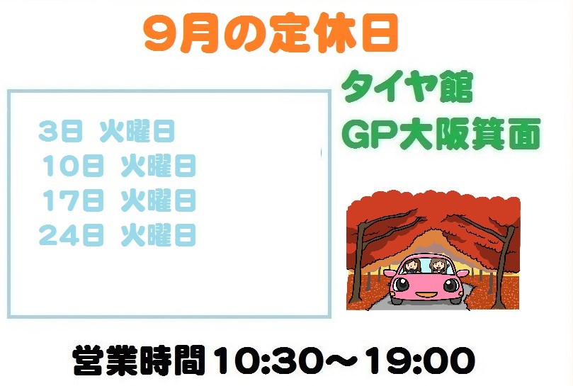 さてさて、9月の定休日のご案内です!!