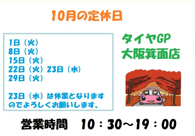 さてさて!今日は10月の定休日のご案内です!!