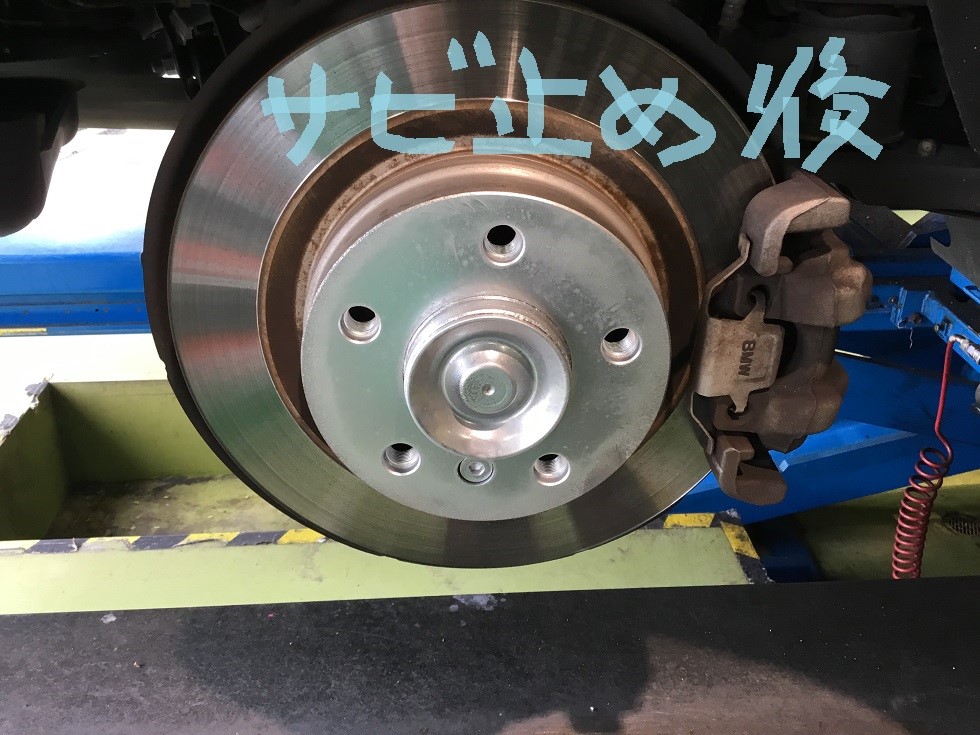 そのため、タイヤを外した場所(ハブ)のサビを削り、さび止めを塗らせていただきました!