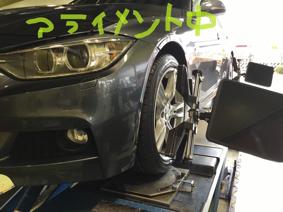 タイヤ取付後はアライメント調整(タイヤの取り付け角度の調整)