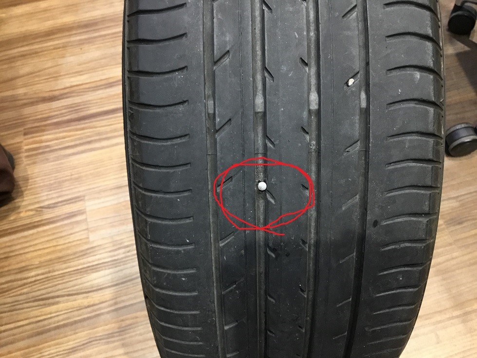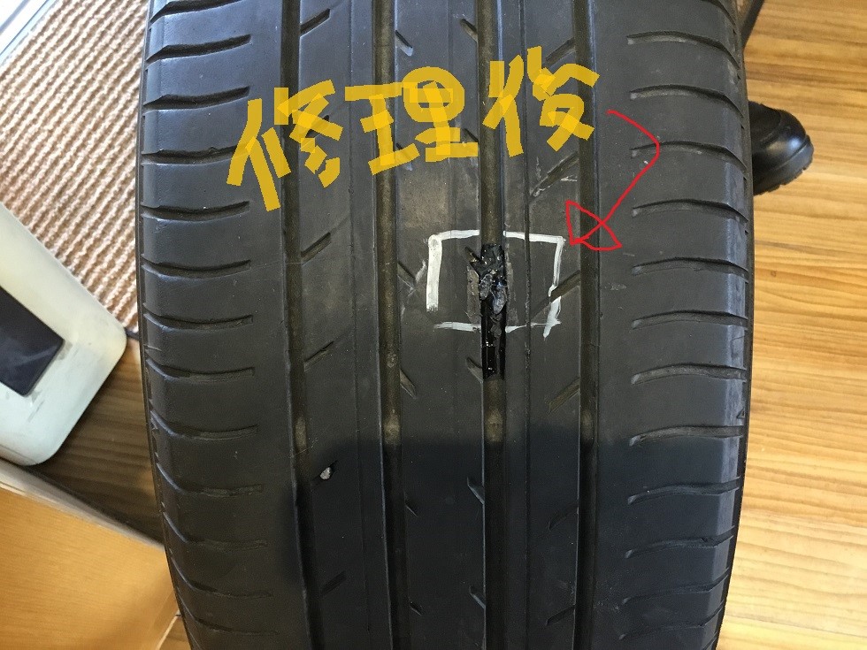 本日電話で、釘が刺さっているから修理してほしいというお電話をいただきました。