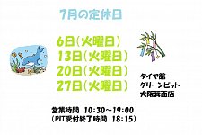 いつもタイヤ館グリーンピット大阪箕面店をご利用いただきありがとうございます!! 今日から7月ですね〜! 最近は雨続きですが、7月も頑張っていきましょ〜(^O^)(^O^) さて、今日は7月の定休日のご案内です! 7月6日(火) 13日(火) 20日(火) 27日(火) は定休日をいただいておりますのでよろしくお願...