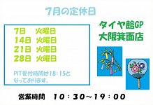 ★いつもタイヤ館グリーンピット大阪箕面のHPをご覧頂き誠にありがとうございます★ なんと… 7月10日(金)〜19日(日)まで、 【タイヤSALE】開催いたします(*´▽`*) 大変、大好評だった前回の『大商談会』に引き続き、 お得な時期がやってきます!! 前回のセールに間に合わなかった方、 欲しい商品があ...