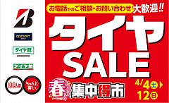 いつもタイヤ館グリーンピット大阪箕面店のWEBをご覧いただきありがとうございます! 前回の集中得市が好評につき、 本日から春の集中得市第2弾が開催されます!! 期間は4月4日(土)から4月12日(日)となります!! タイヤ相談はお客様のお車・乗り方に合ったタイヤのご提案をさせていただきます...