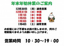 いつもタイヤ館グリーンピット大阪箕面店をご利用いただきありがとうございます!! 本日は、2019年最後の営業日でした! また、決算セールも本日で終了となります! 期間中はたくさんのご来店ありがとうございました! 次回のセールも乞うご期待ください♪ 明日からタイヤ館グリーンピット大阪...