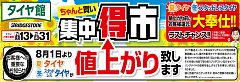 いつもタイヤ館グリーンピット大阪箕面店のWEBをご覧頂きありがとうございます!!7月13日(土)~7月31日(水)まで値上がり前の集中得市セールを開催することが決定いたしました!!!(*´∇`*)今回は値上がり前ギリギリまで行わせて頂きます!!タイヤをご検討の方はラストチャンスとなりますので...