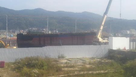 あんなに大きい船が、駅のすぐ隣まで流されてきてるなんて…。