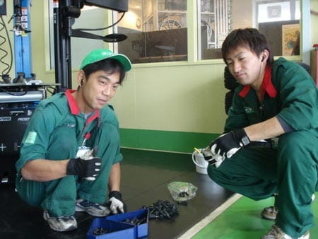 ピットのお二方!朝の空き時間にチューブレスバルブの準備中!!
