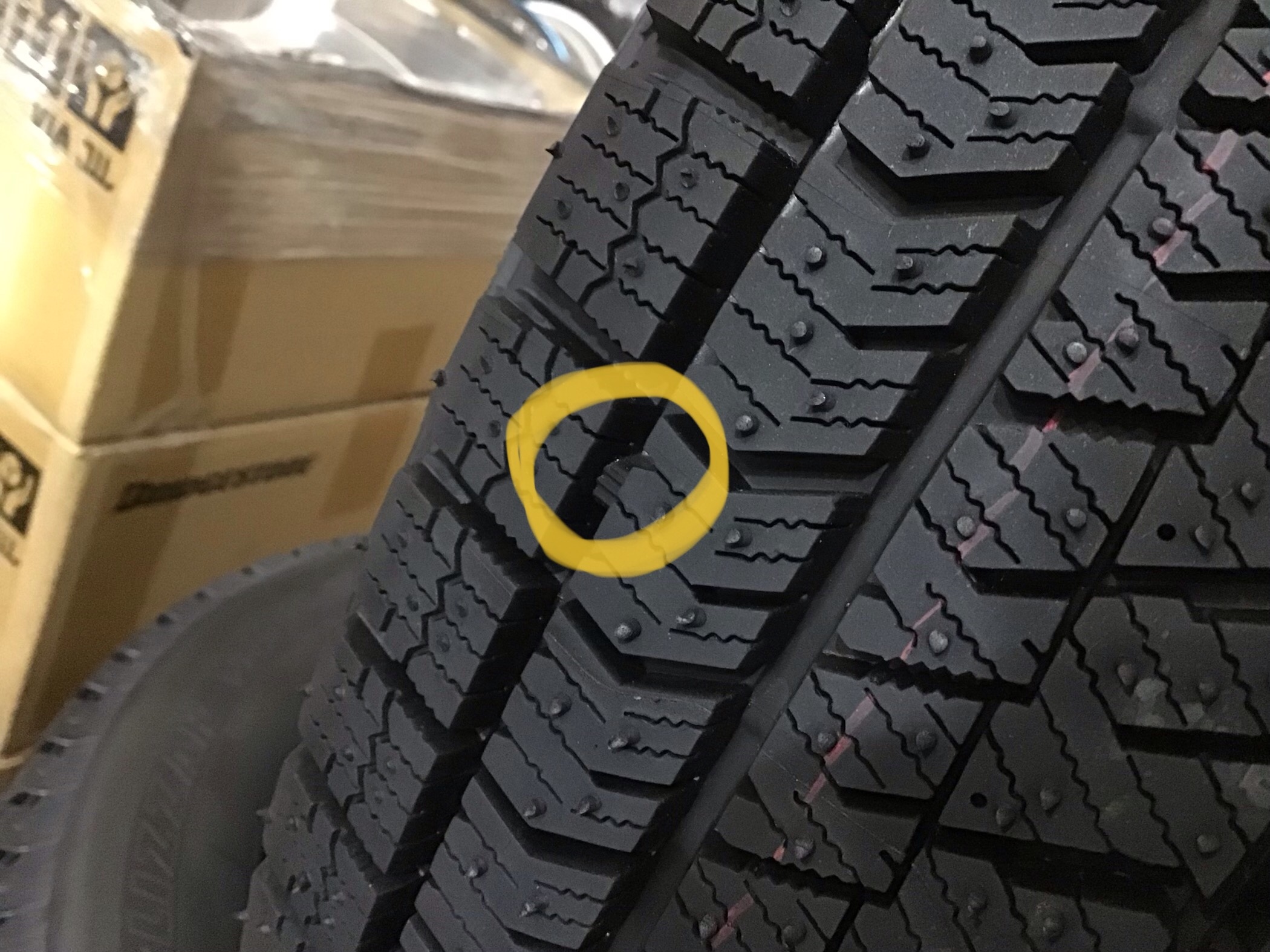 写真のようなものなのですが、これが露出してしまうとスタッドレスタイヤとして使用できなくなってしまうんです( ; ; )