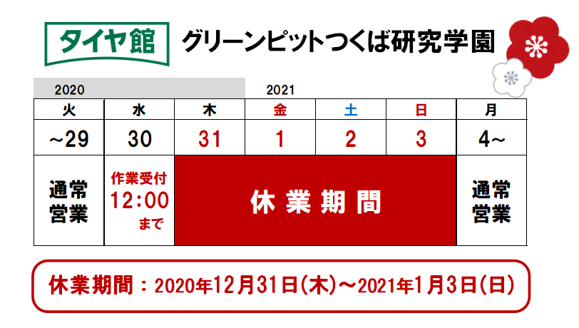 【年末年始休業】12/31(木)~1/3(日)休業いたします