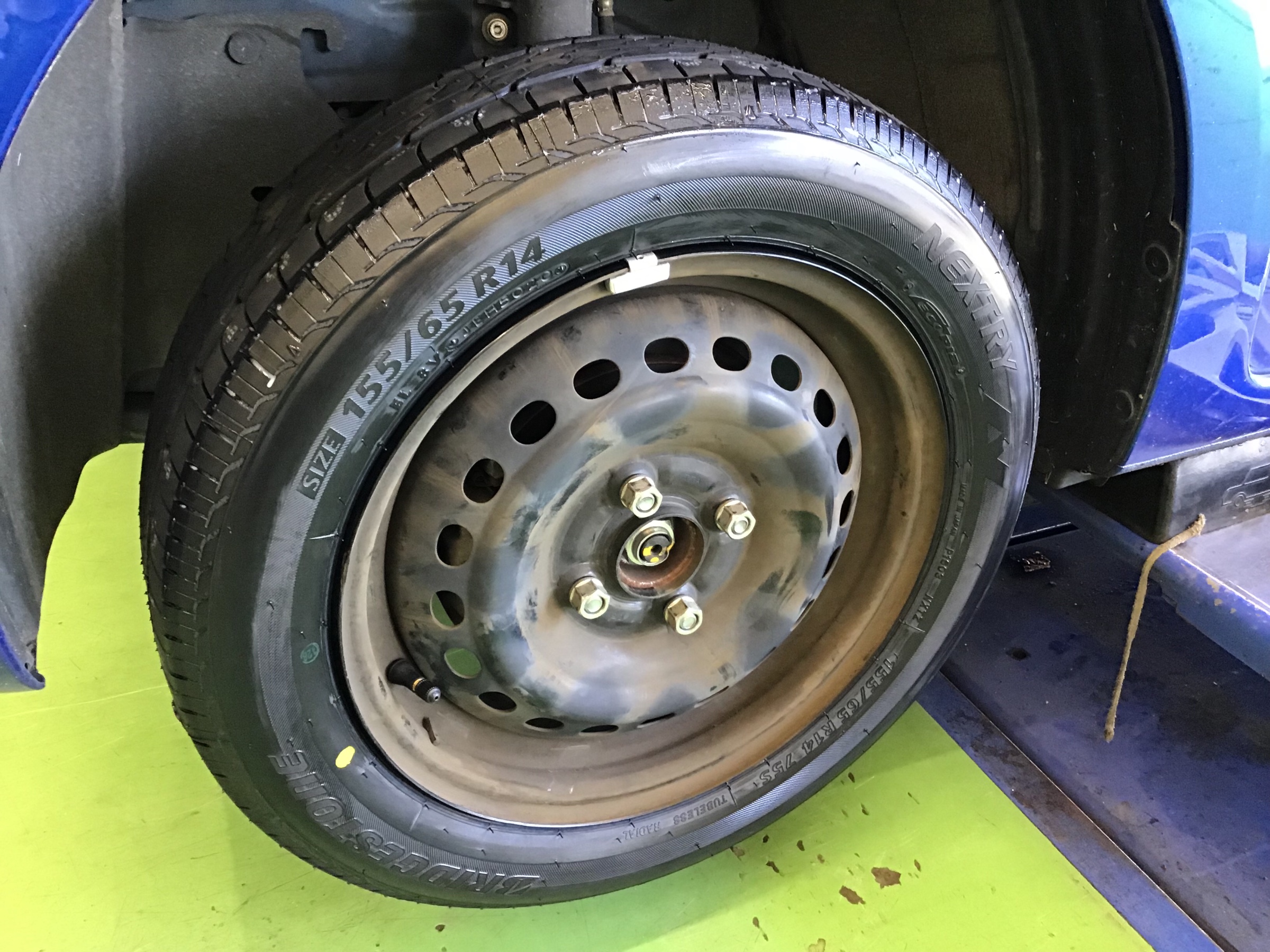 写真はありませんが、タイヤを外したら内側はゴムが剥がれていて非常に危険な状態でした。
