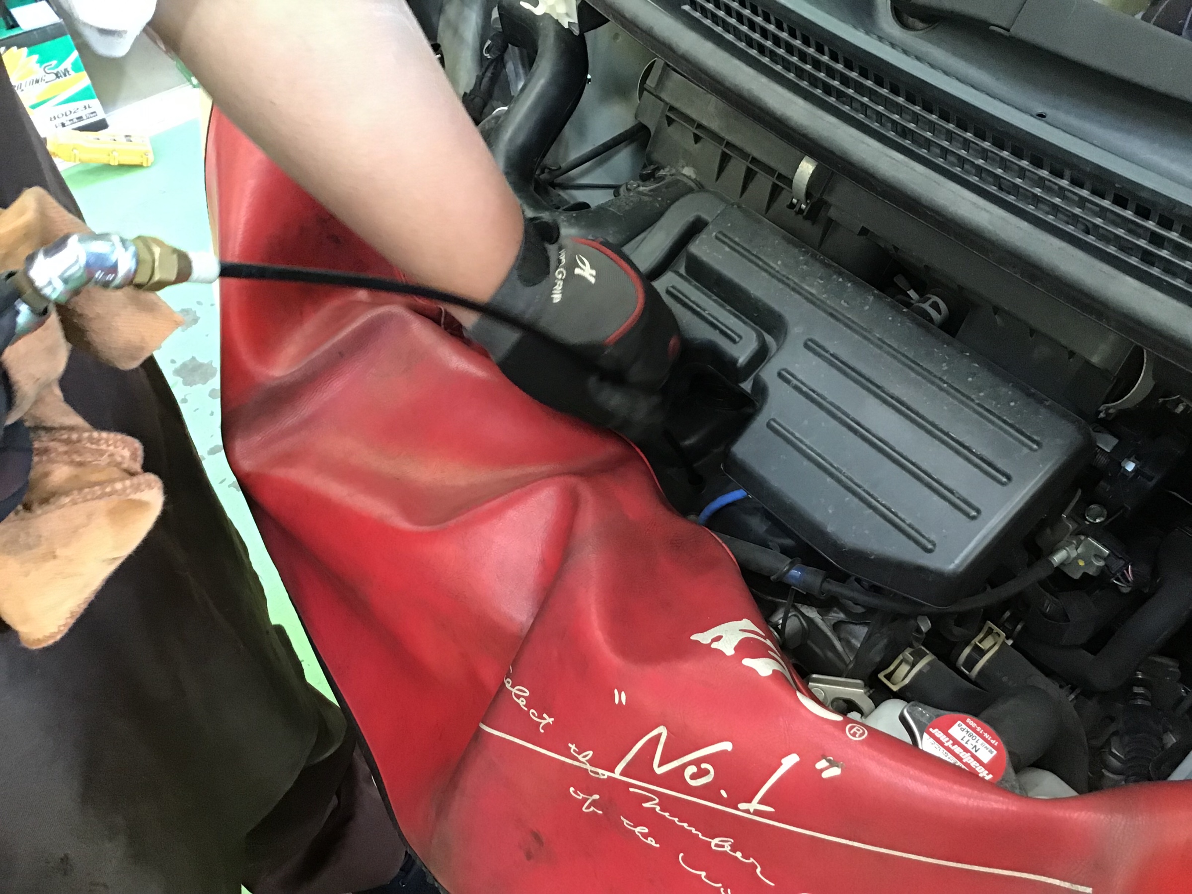 オイルのゲージを抜いてそこに上抜きのホースを入れて地道に抜いていきます!!