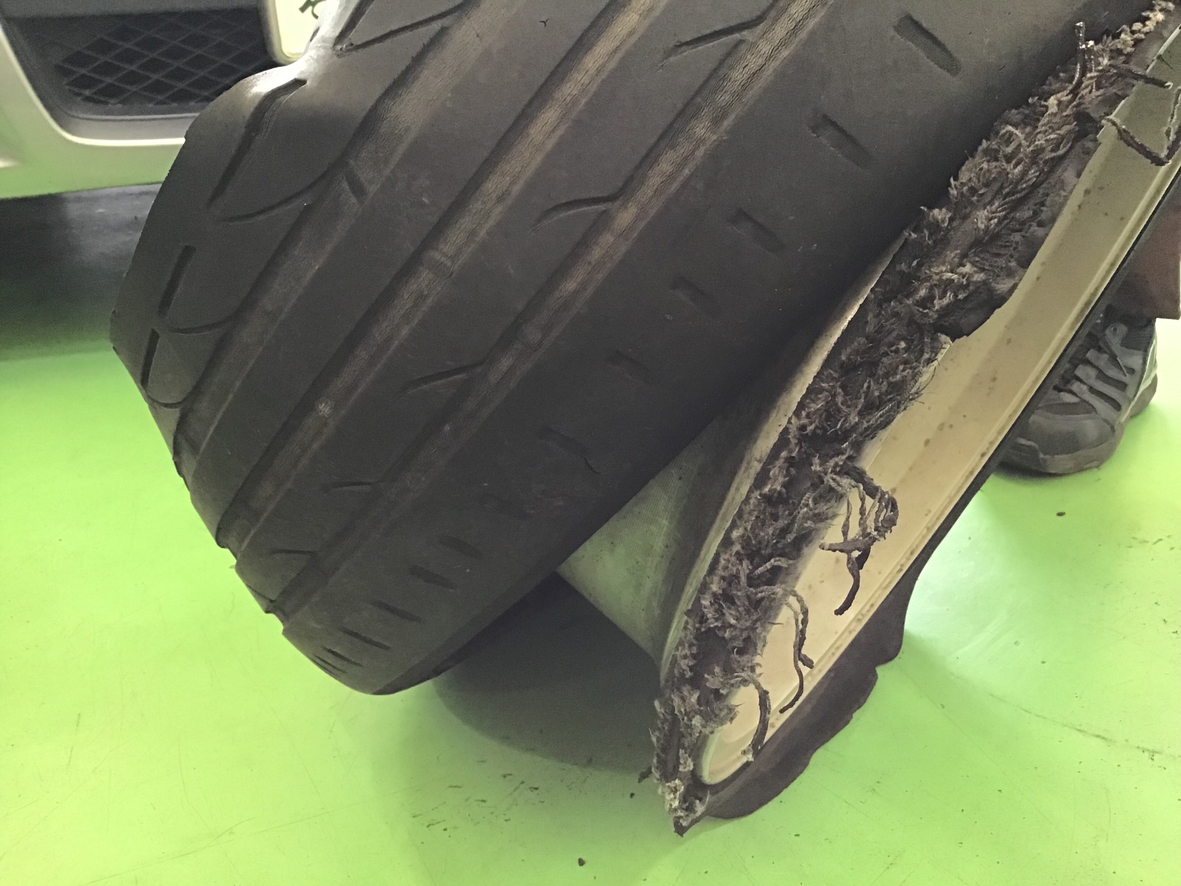 また空気が抜けた状態で走行すると、サイド面を引きずりながら走行するので内面がぼろぼろになってしまいます。