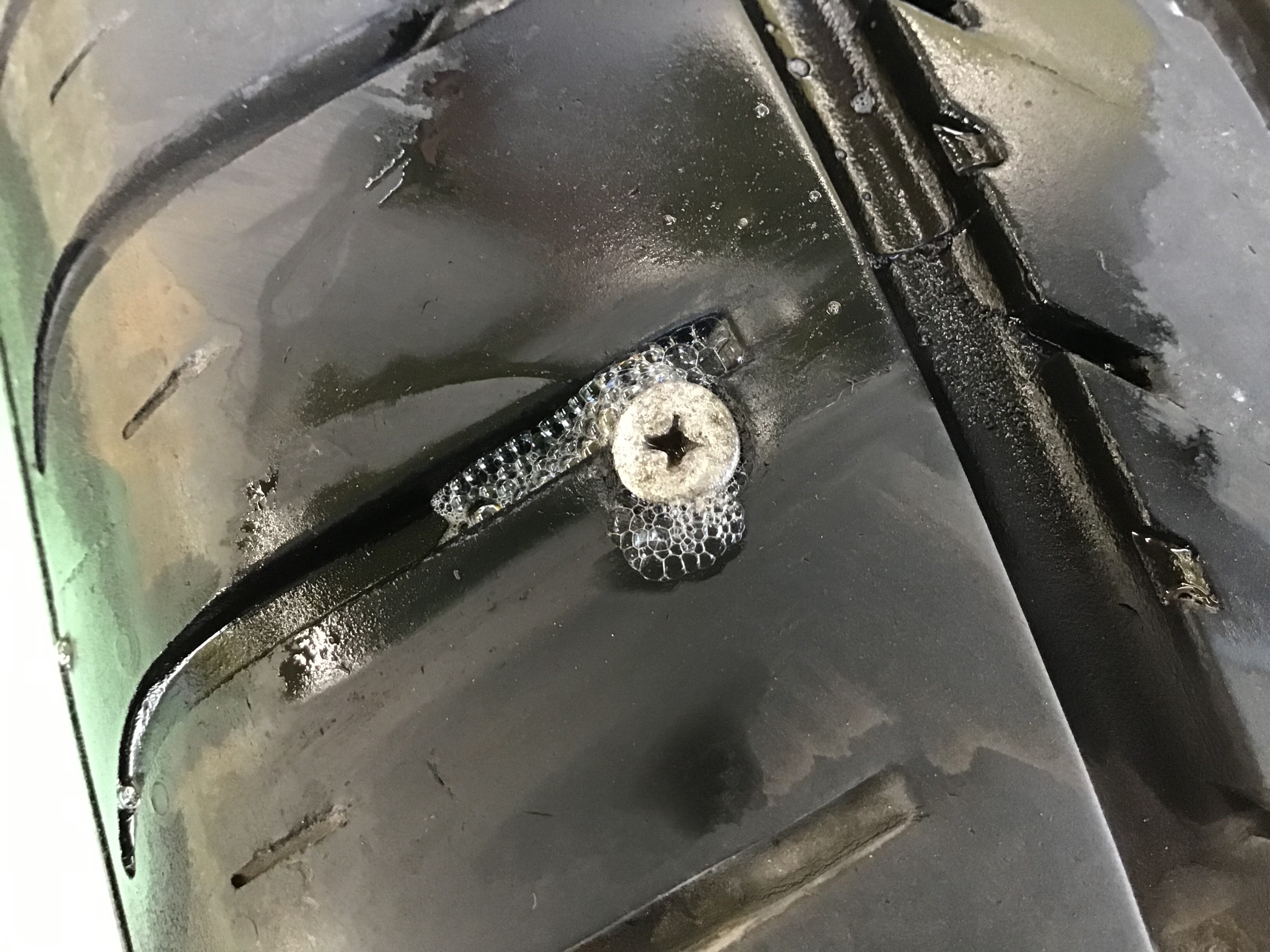 タイヤの接地面に釘が刺さってますね(;_;)