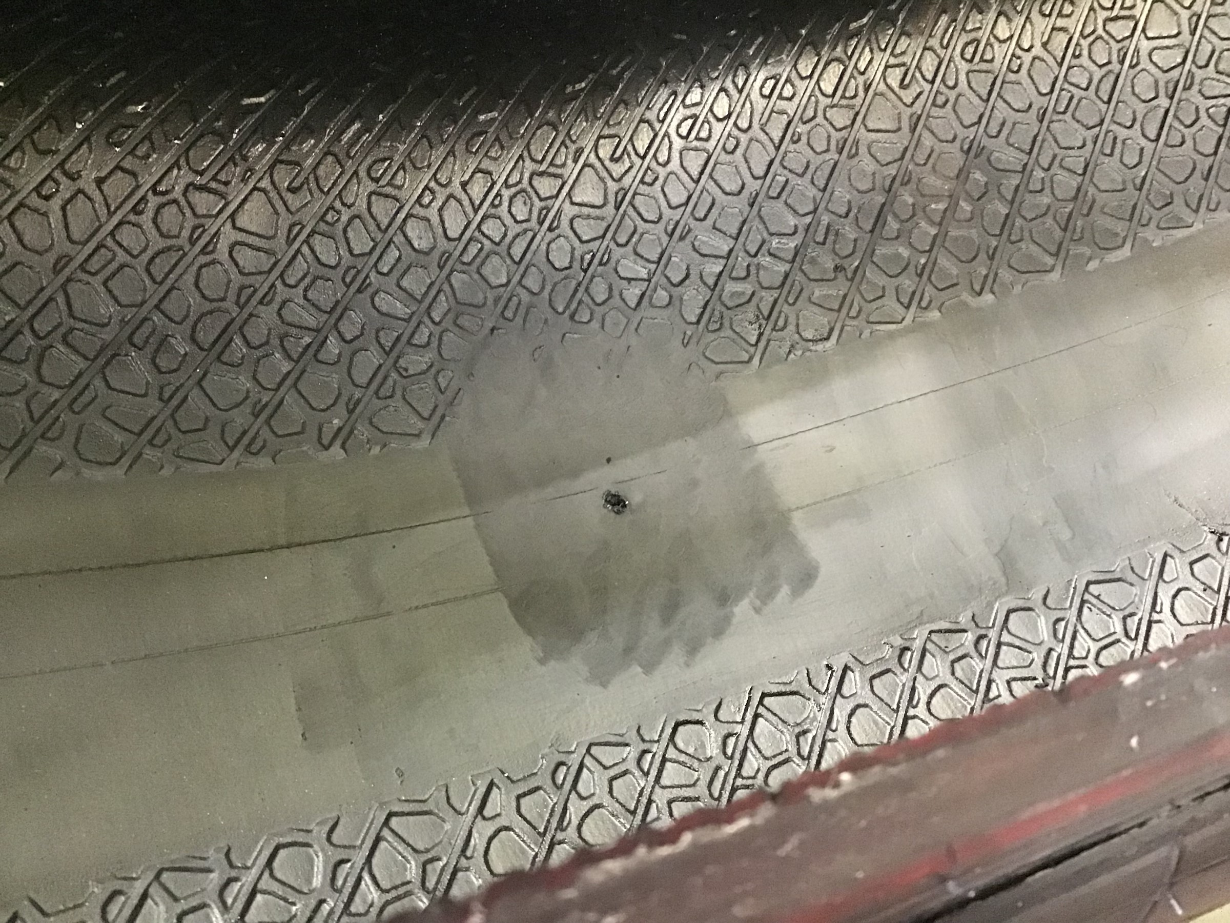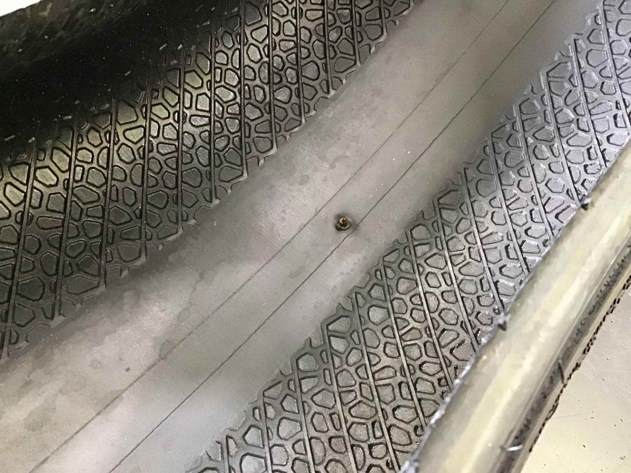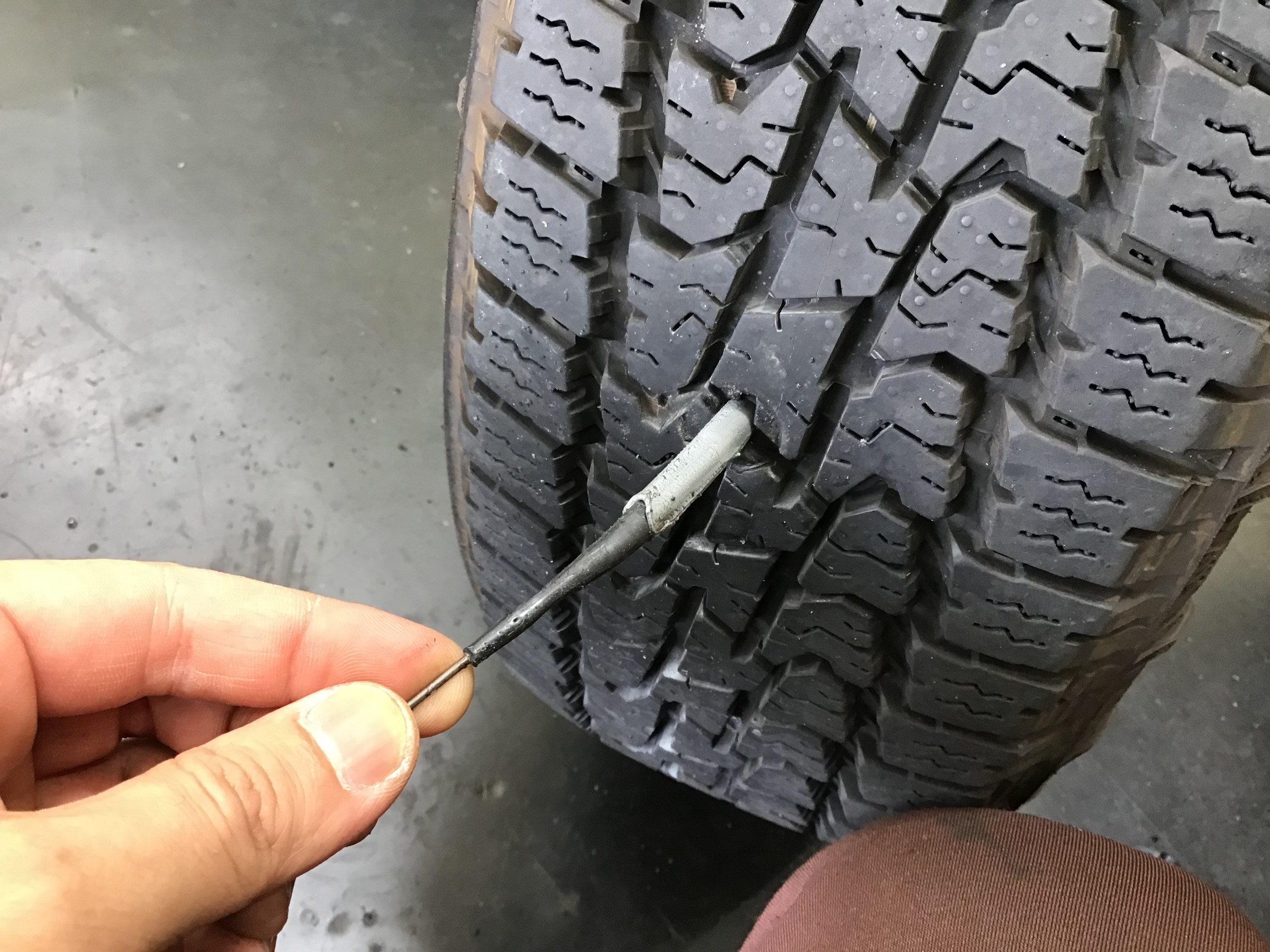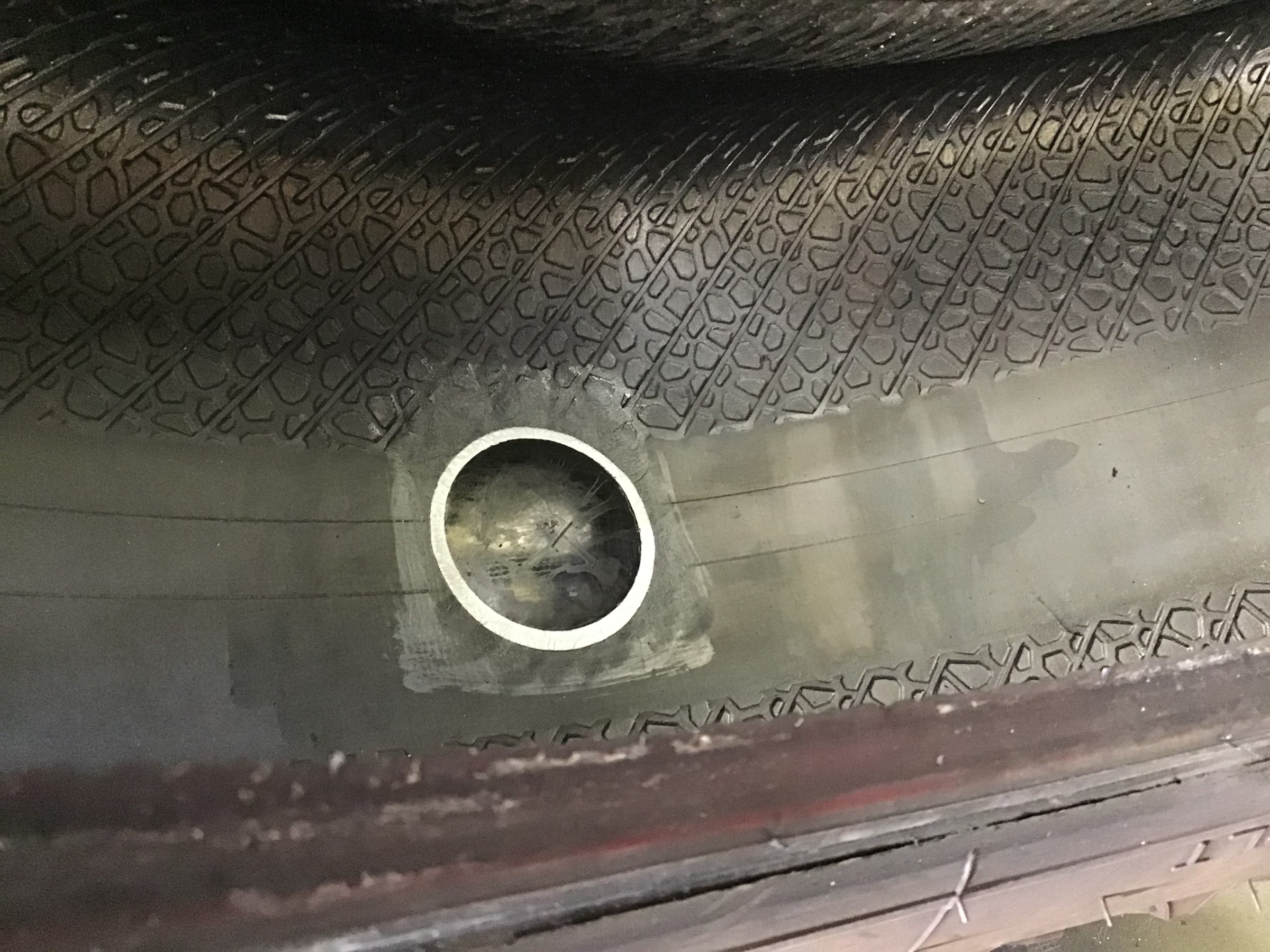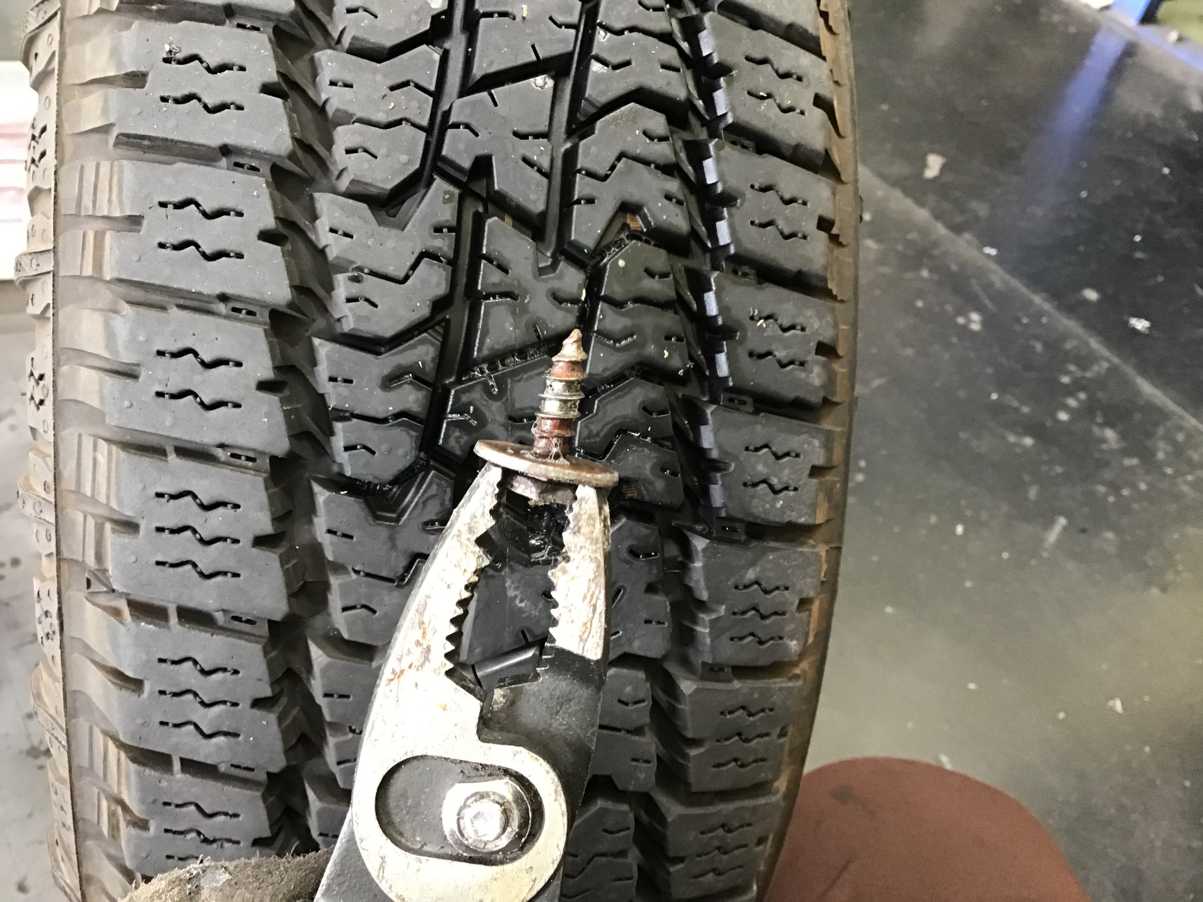 どーーーーん!!! タイヤに太いネジを発見してしまいました( ゚Д゚)