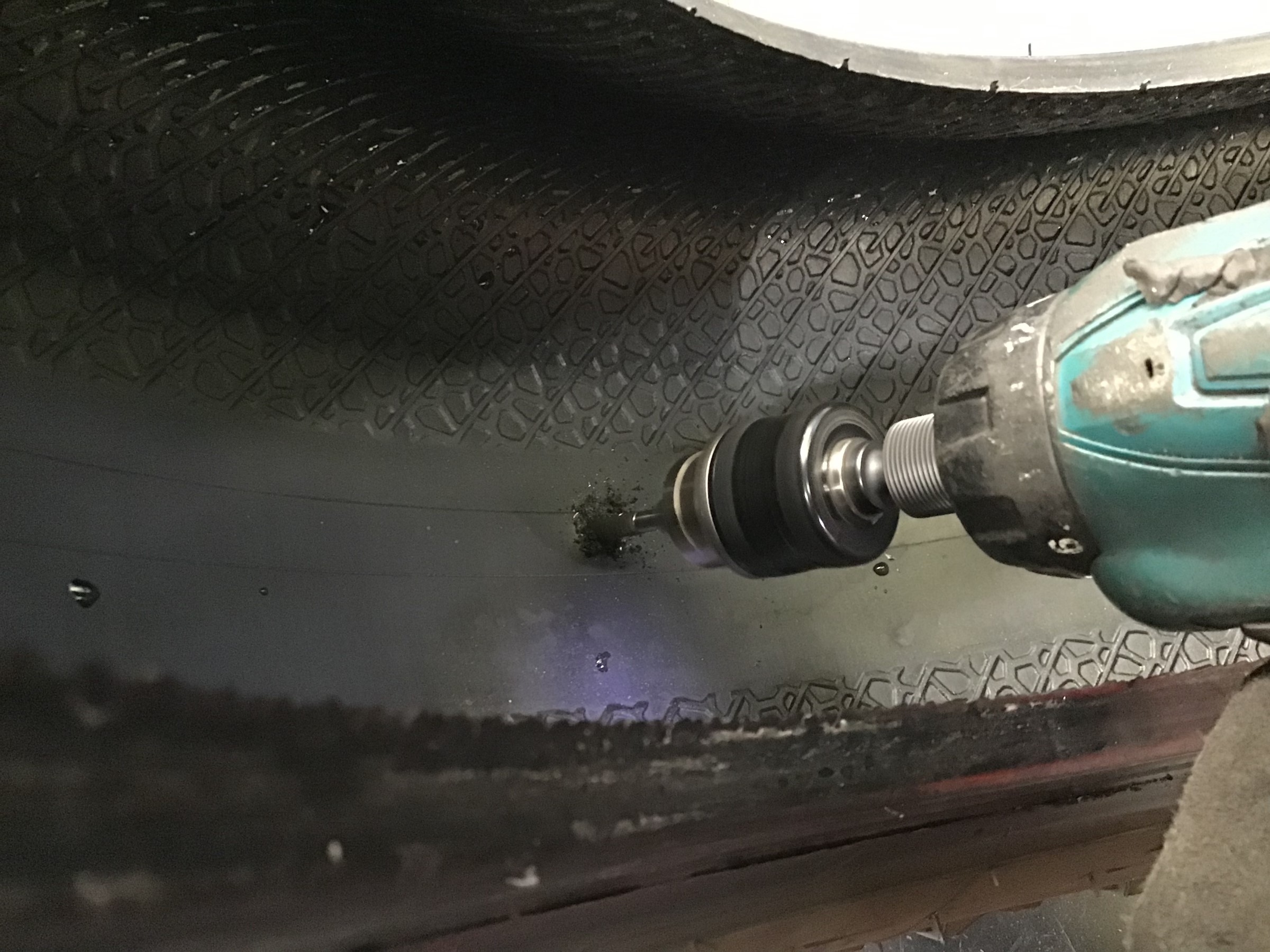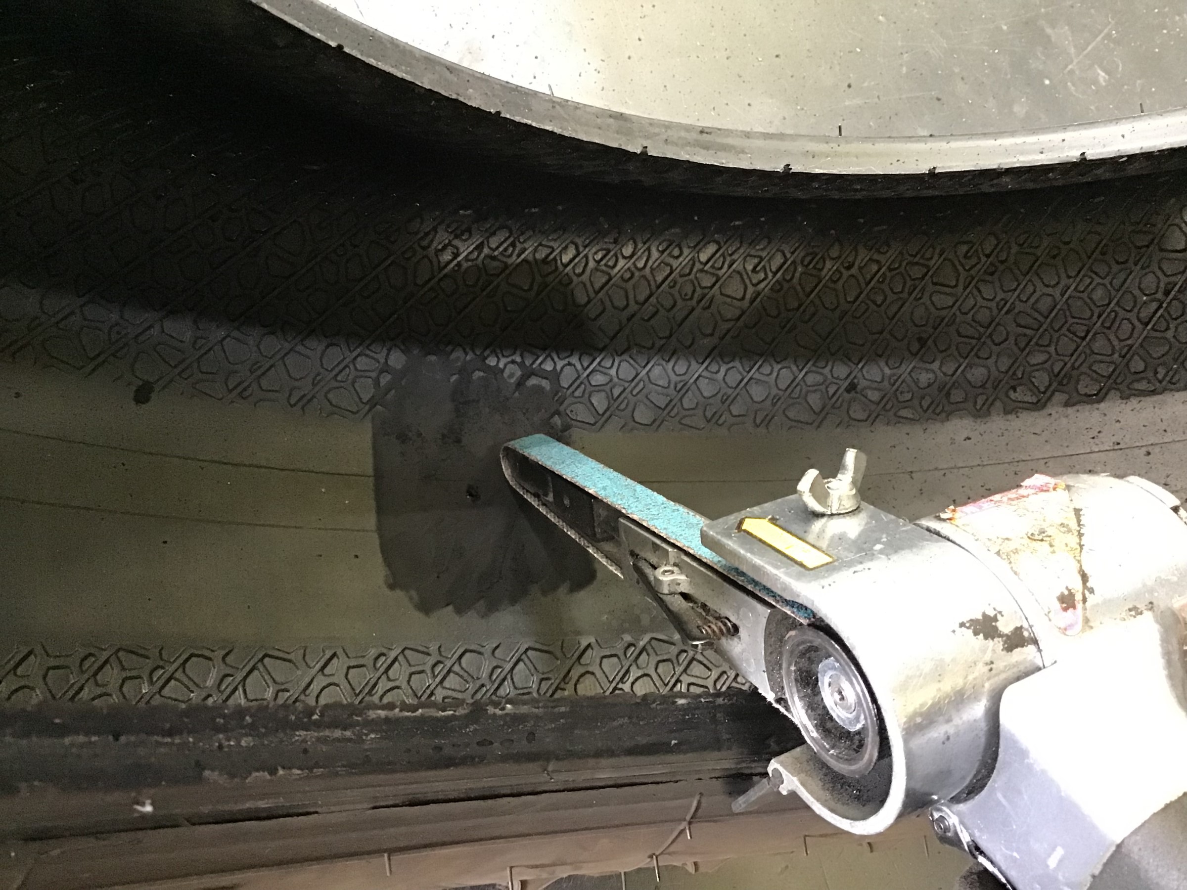 タイヤの内側の凸凹した所を削って平らにしていきます!
