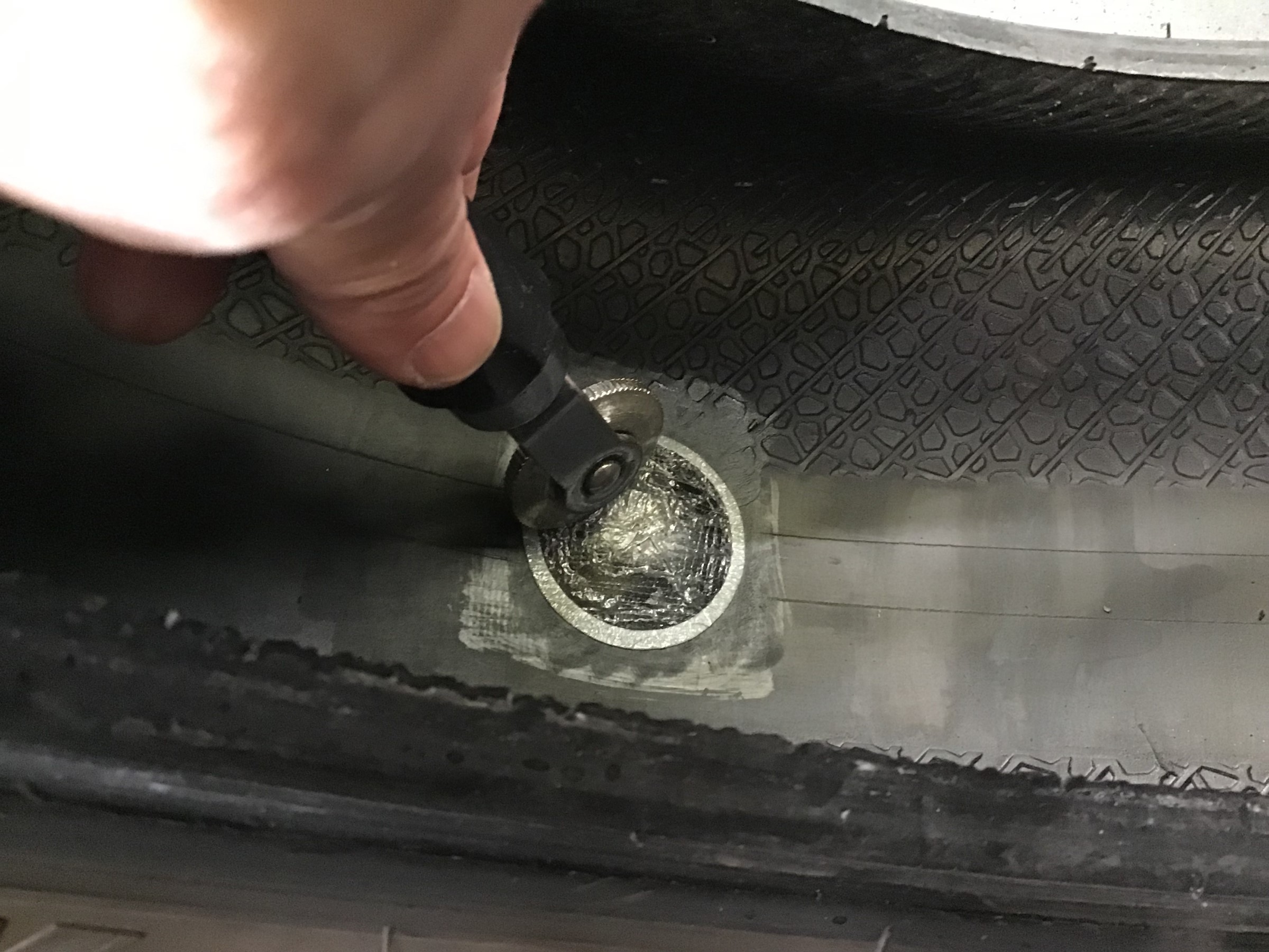 タイヤの内側から貫通させます!!