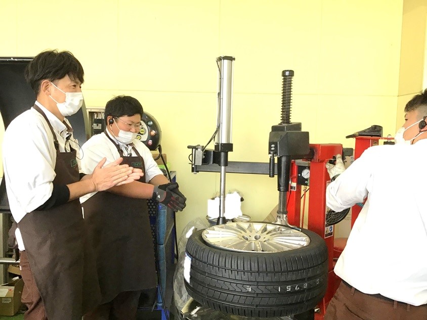こんなに大きなサイズのタイヤの組付けを教わるまでになりました(ง •̀ω•́)ง