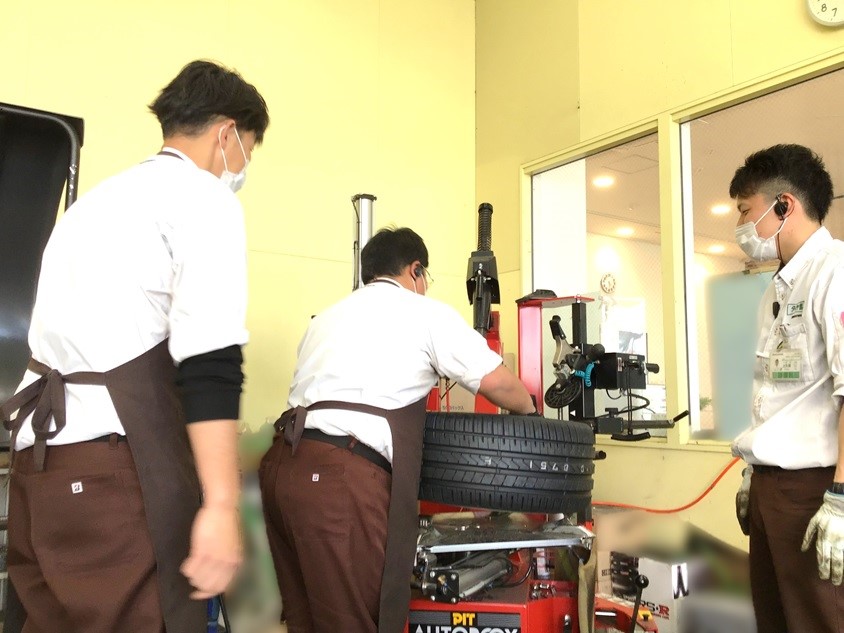 高インチサイズのタイヤ交換の練習をしています。