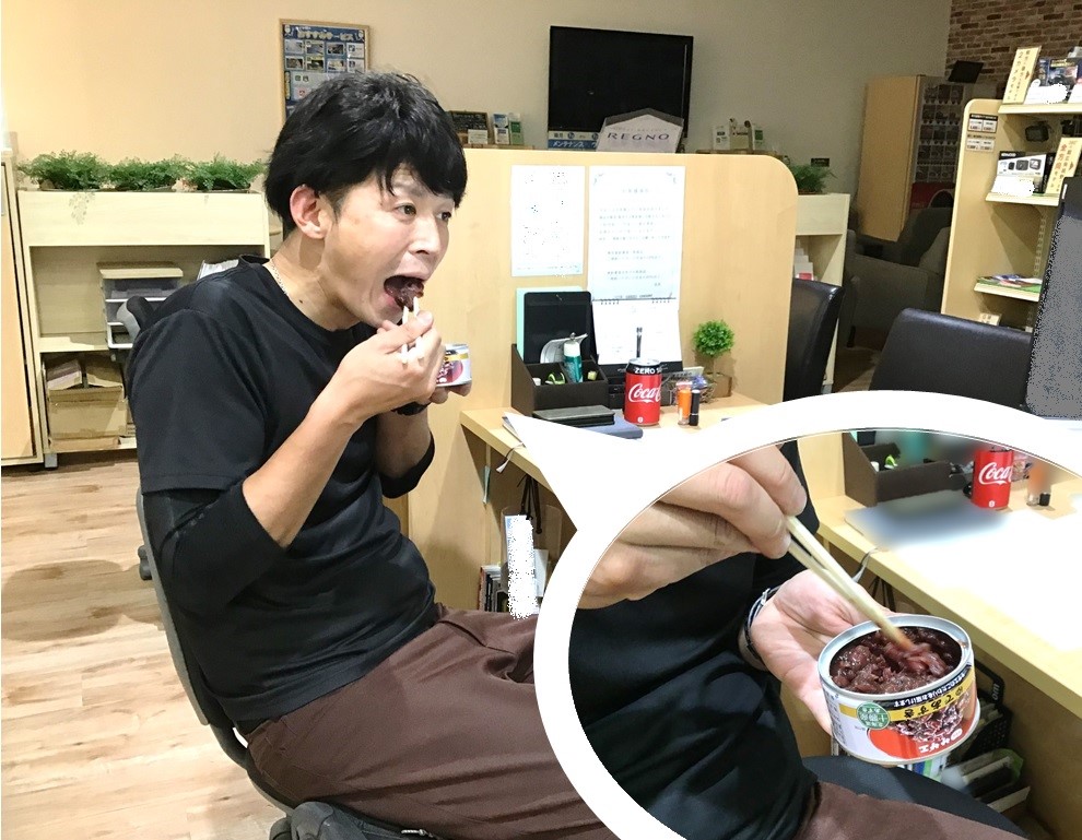 ゆであずきの缶詰がなぜロッカーに… という疑問が頭に浮かびました。