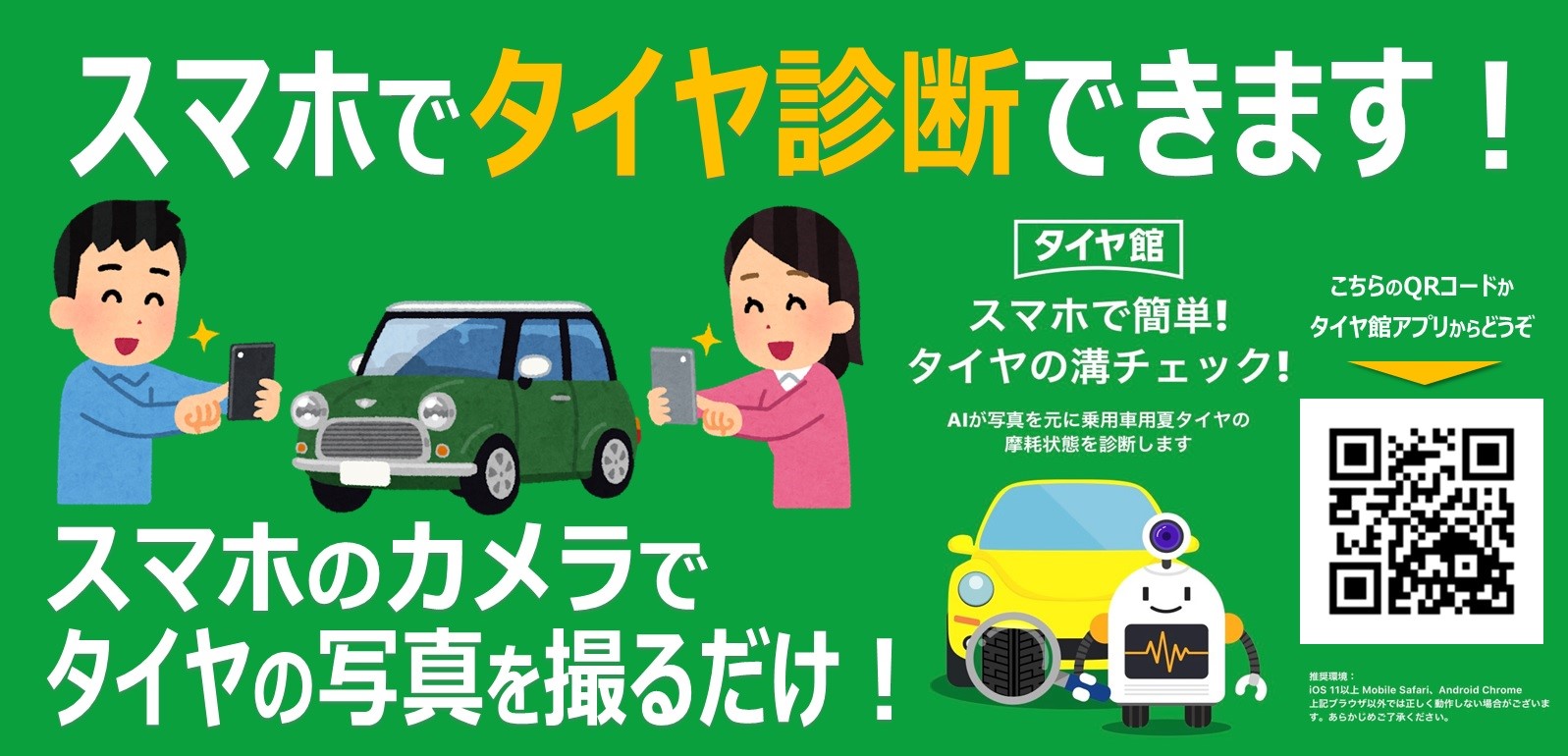 スマートフォン限定で、タイヤの溝の簡易診断がコチラからも受けられますが、