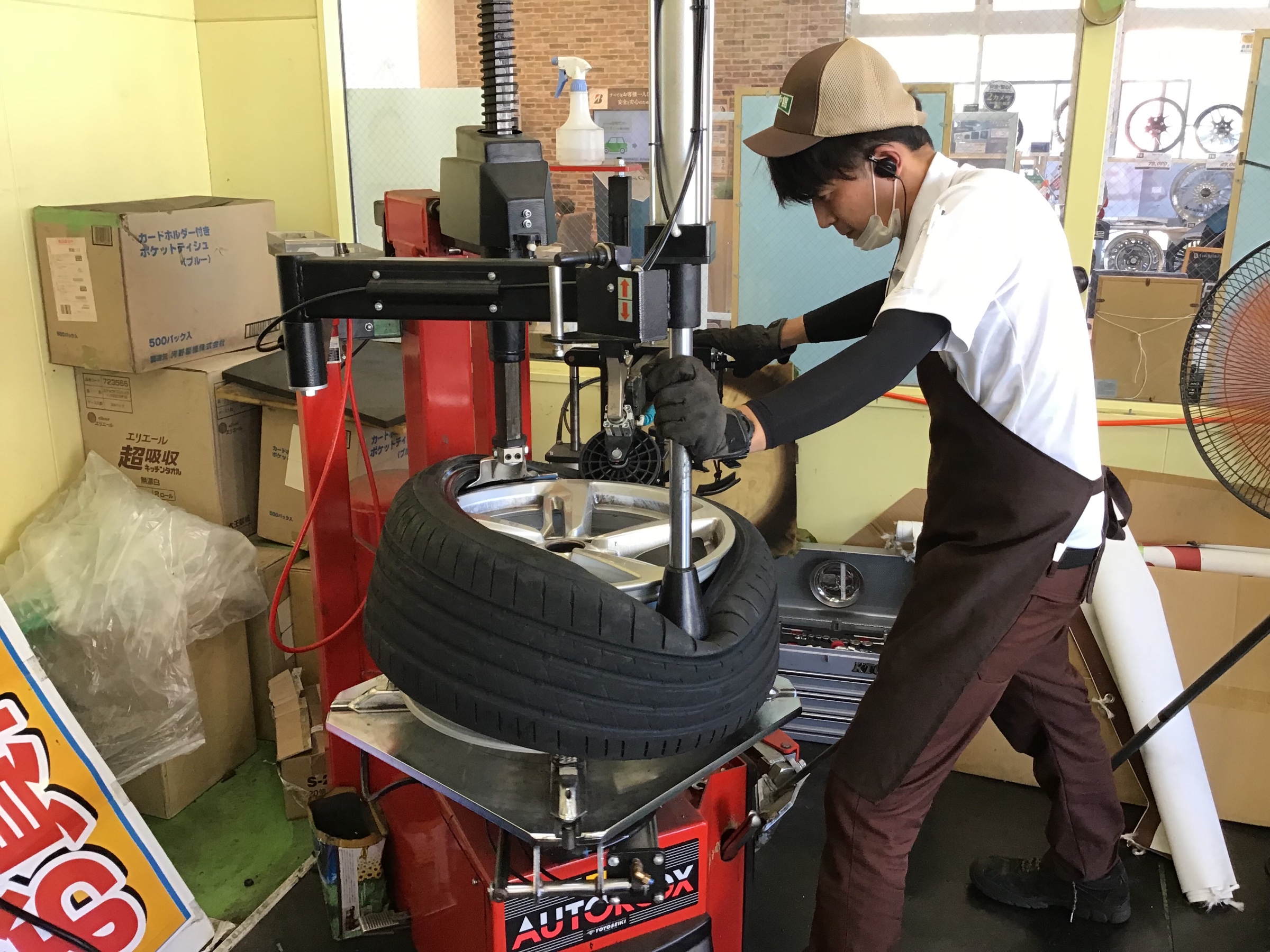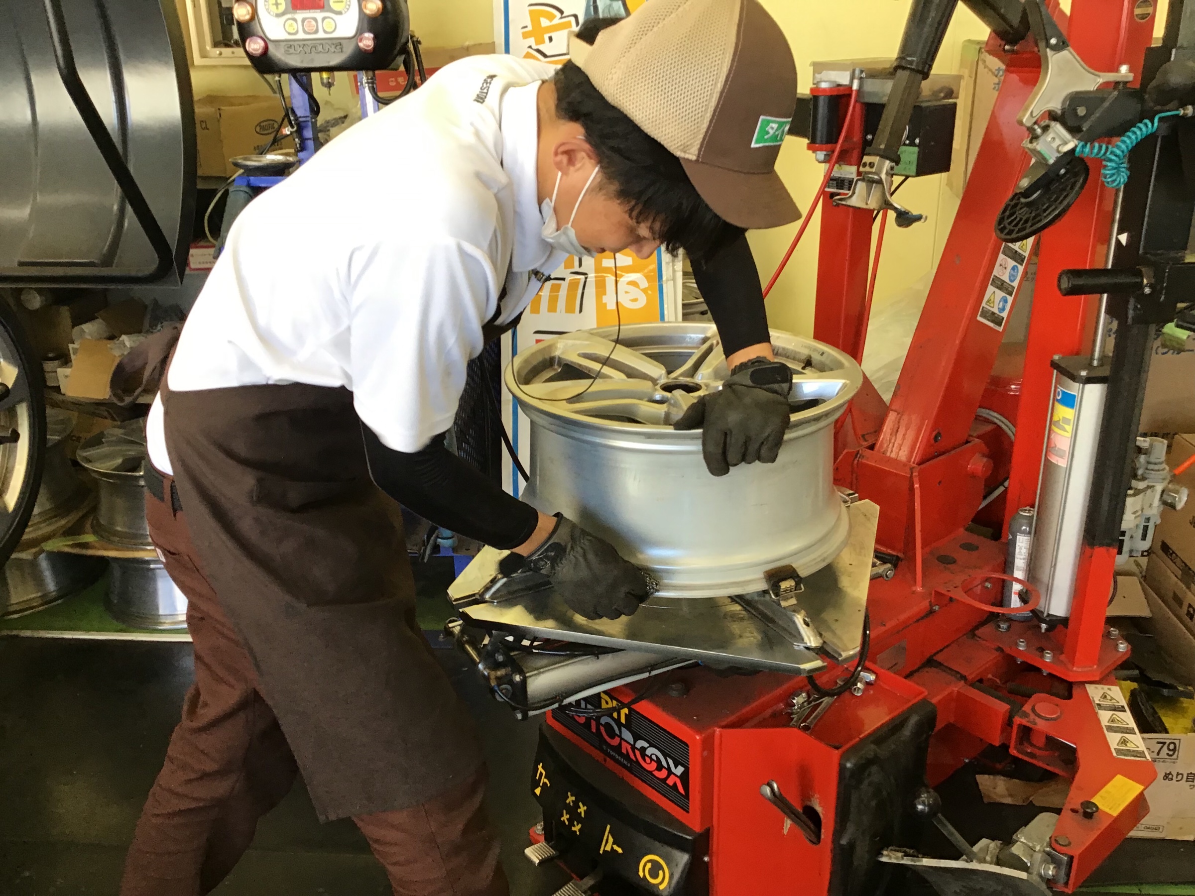 サイドが硬くて組みにくいタイヤですが、吉沢店長は何事もないかのように組み終えてました(´⊙ω⊙`)