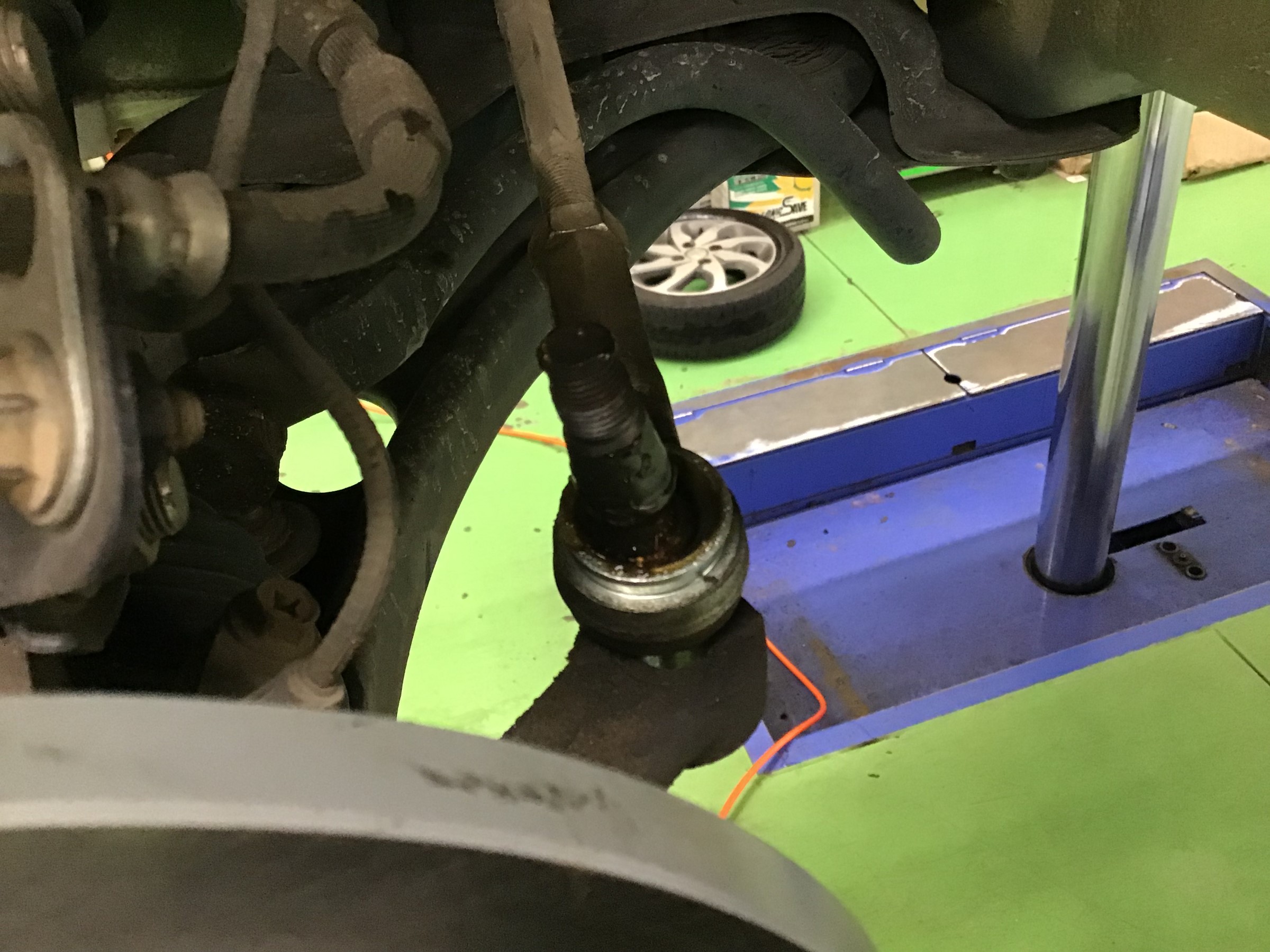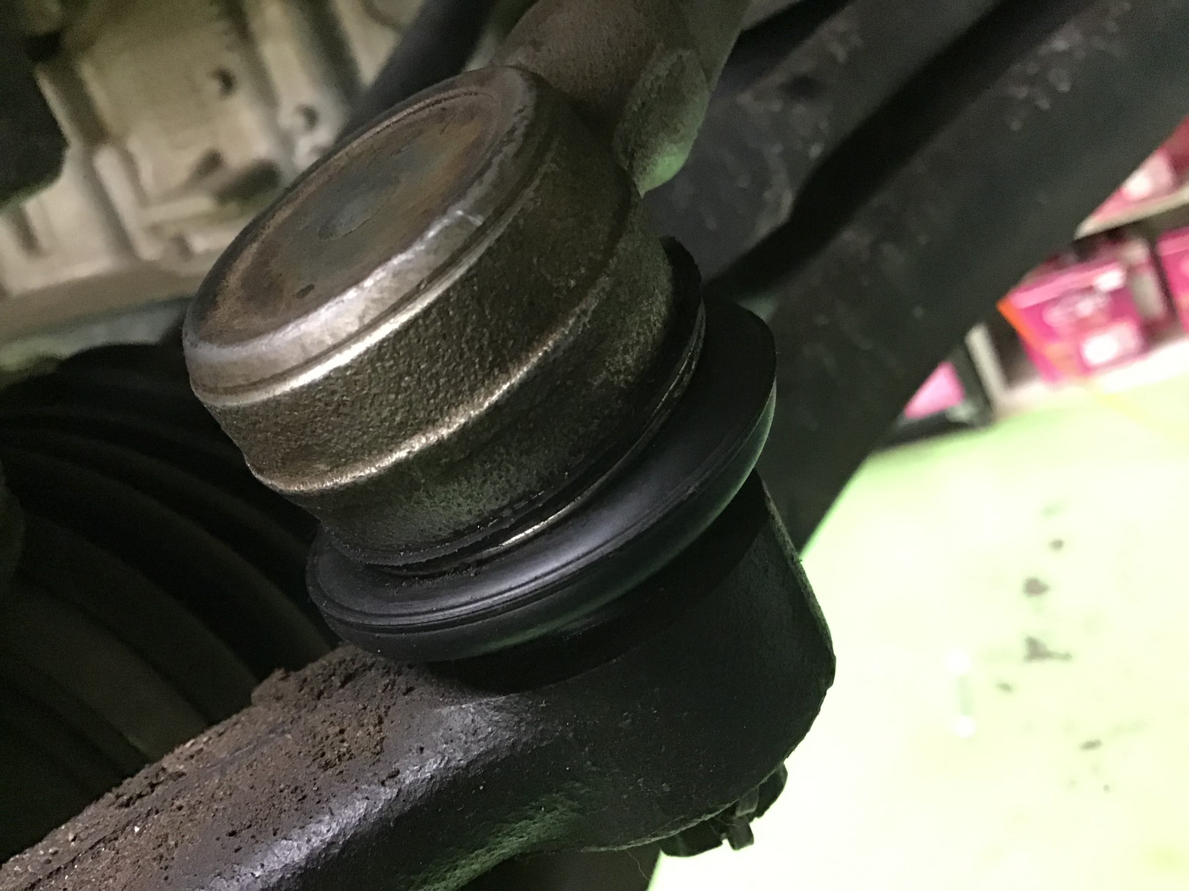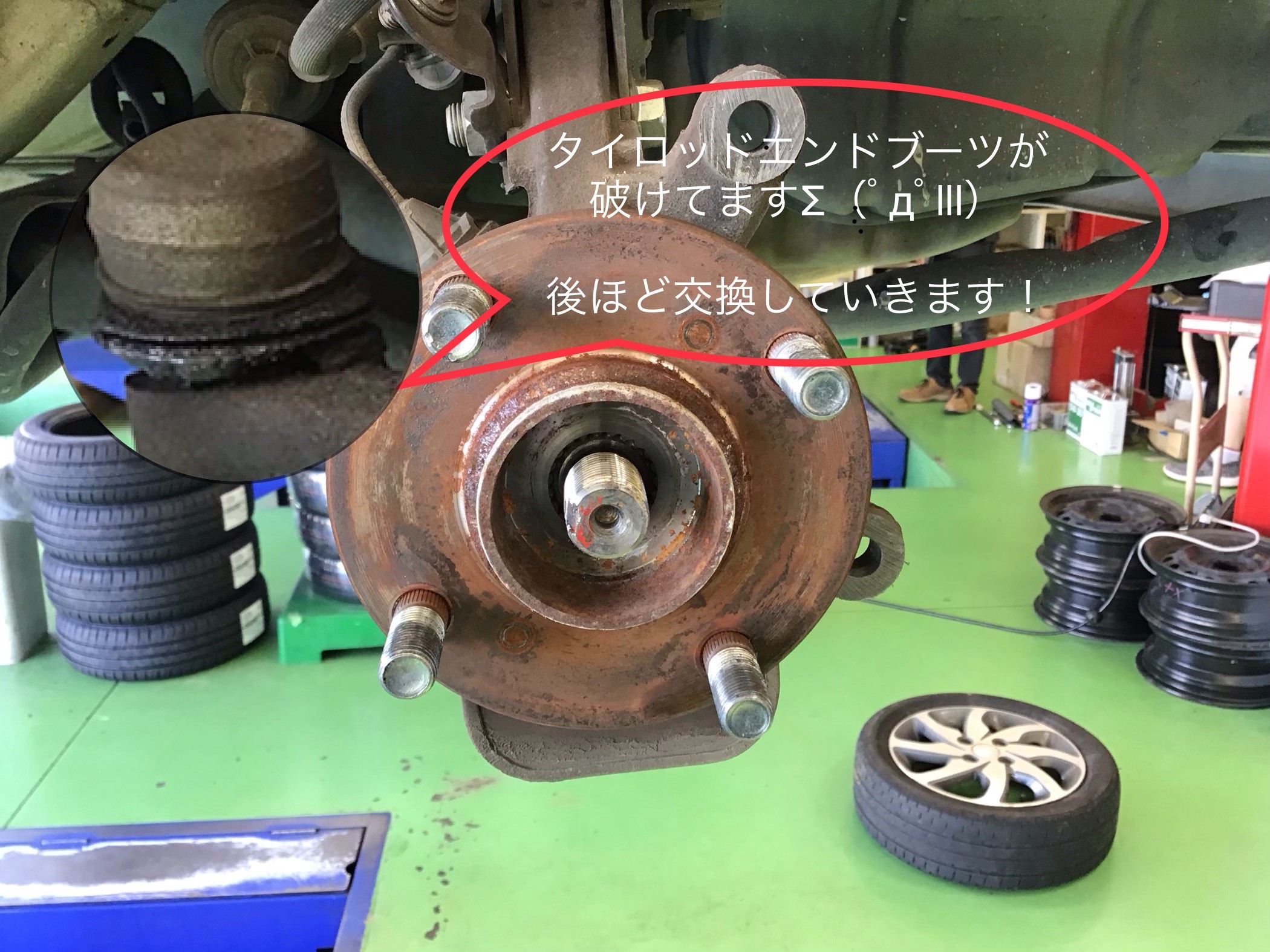 先ほどのディスクを外した時の画像…タイロッドエンドブーツが破れてましたね。