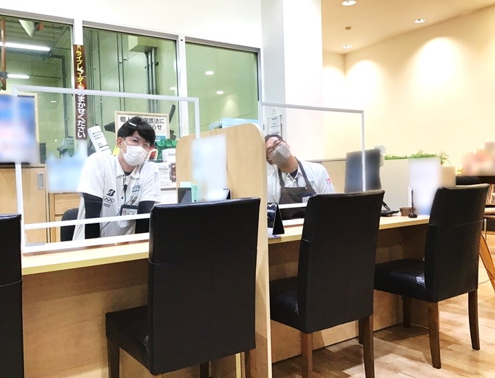 一部の商談席にパーテーションを設置しております。