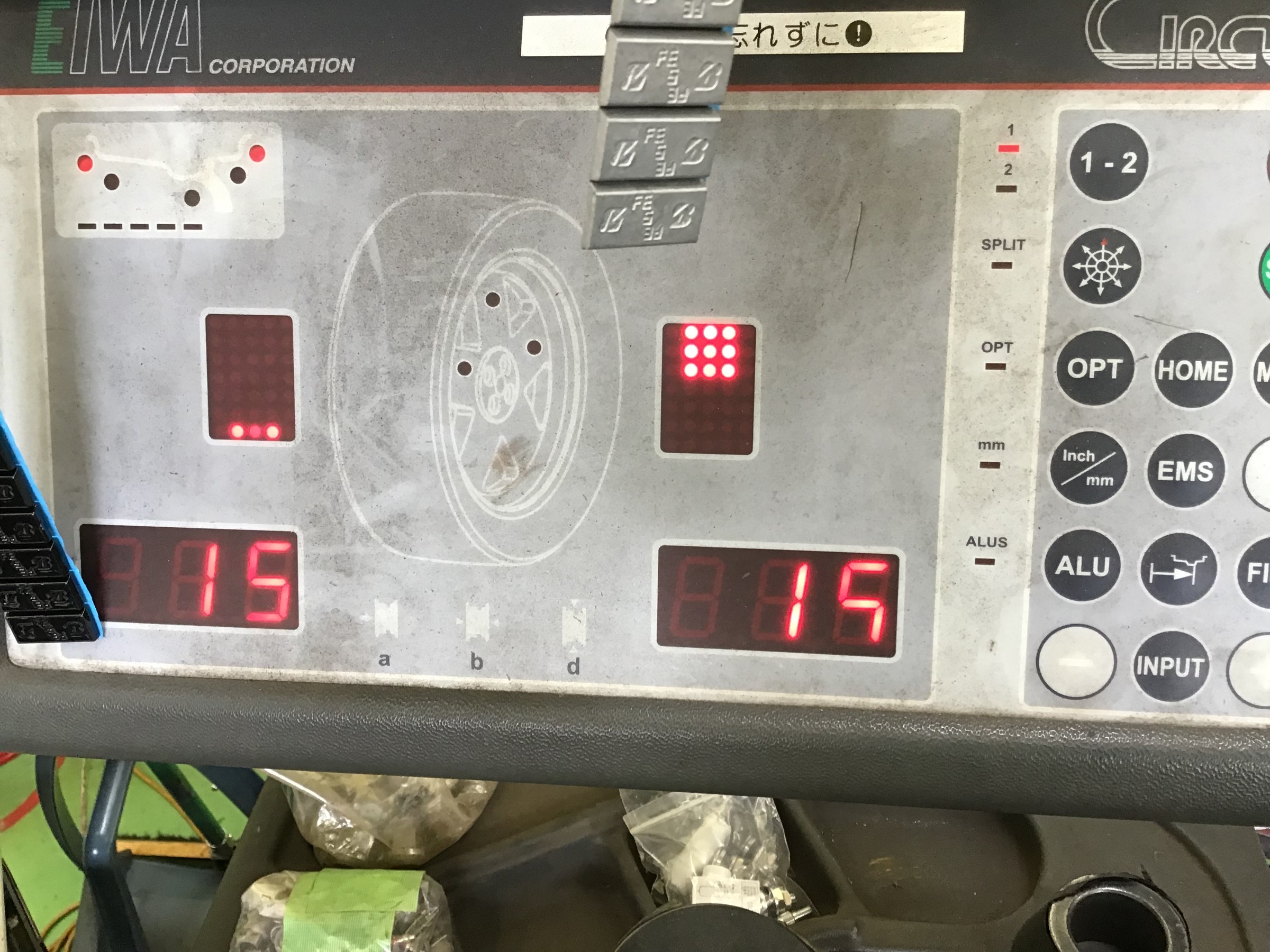 スチールホイールですので今回は打ち込みタイプのウエイトですね。