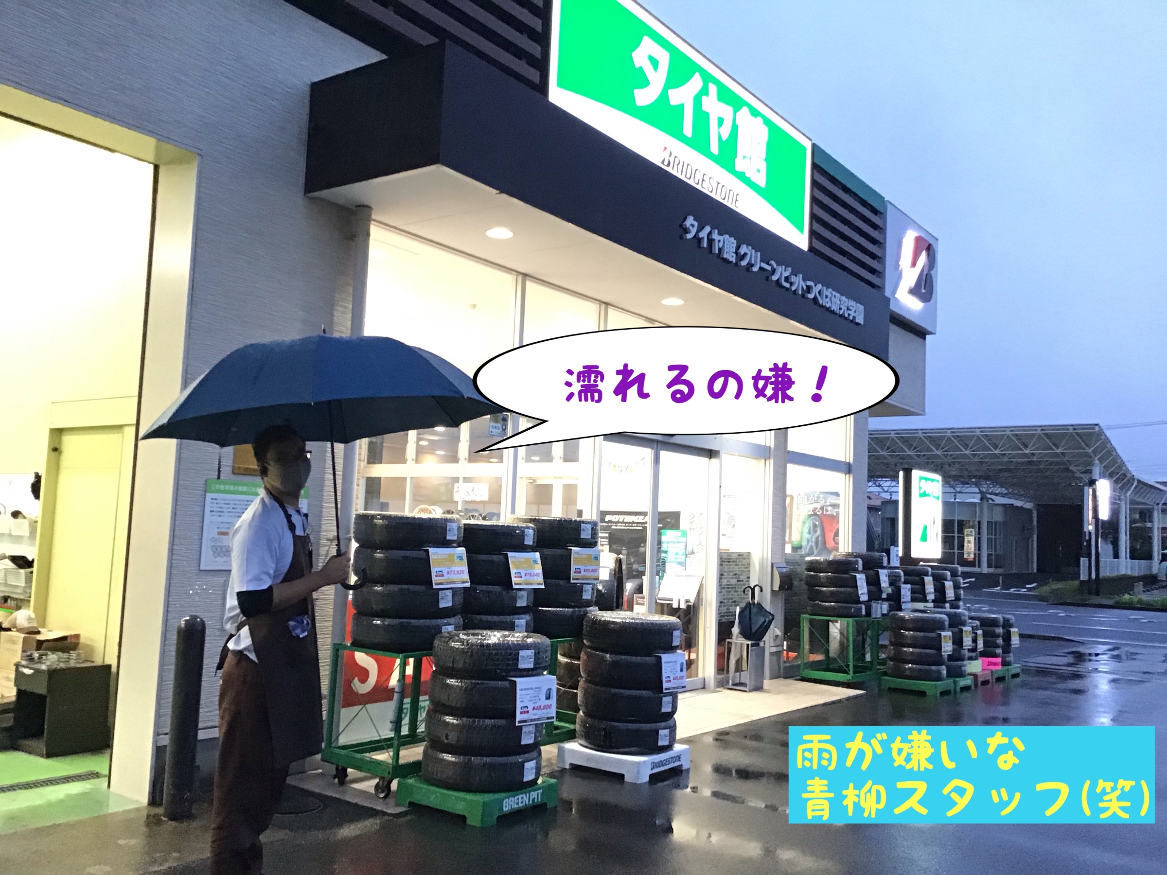 タイヤ館には頑なに濡れたくない男が(´⊙ω⊙`)