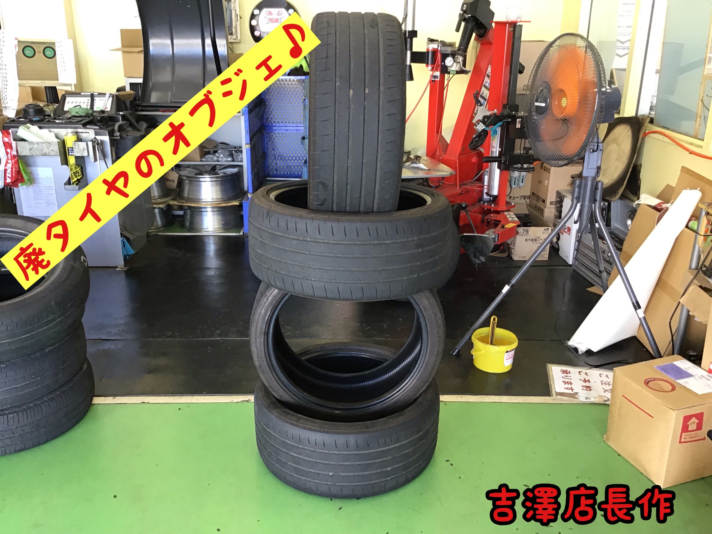 廃タイヤでオブジェがΣ( ̄。 ̄ノ)ノ